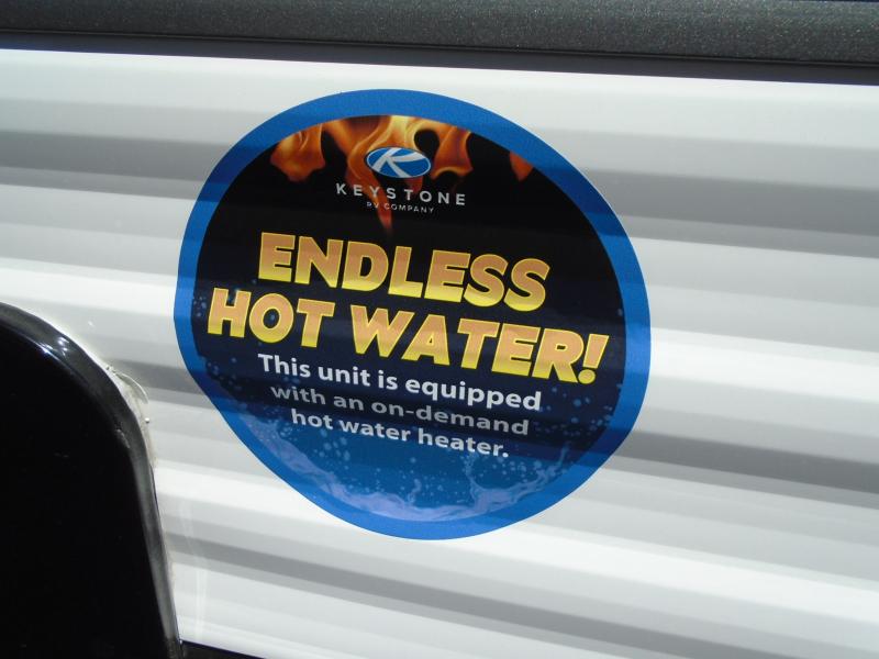 Open your horizons with the Hideout Sport Single Axle travel trailers by Keystone. They are compact, convenient, and lightweight; everything you're looking for in an RV! Each model features an aluminum exterior, tinted safety glass windows, and an I-beam frame with stamped steel cross-members and outriggers for added support. The interior includes blackout night shades for added privacy and real wood doors and drawers that will give a more at-home touch. The Girard tankless water heater is a feature you won't want to camp without, and the LED lighting will keep your space bright and open!