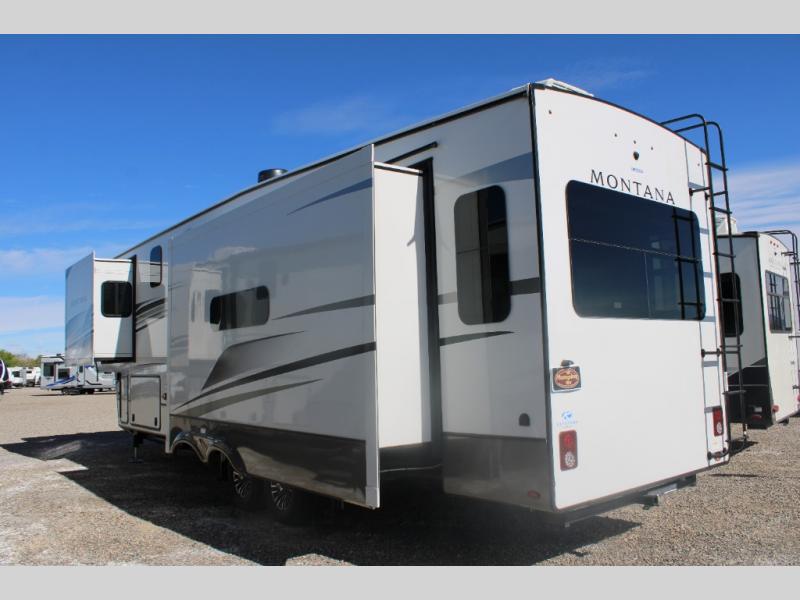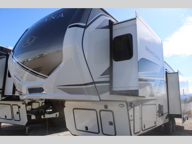 Enjoy luxury, innovation, and the outdoors in any one of Montana's finest fifth wheels. Each set the standard with exceptional features, and exciting factory installed options to provide you a great home on the road. Keystone's exclusive 12" I-beam chassis with z-frame technology has been reengineered to be stronger, lighter and built for "the long haul". A few other construction features you will appreciate include a Road Armor suspension, 2" thick, dual-layered lauan high gloss fiberglass sidewalls, a MaxTurn front cap with KeyShield automotive-grade paint, and a fully walkable roof with an Alpha seamless TPO membrane system. Each feature stylish interiors with two new decor choices paired with beautiful Manhattan Maple hand-glazed hardwood cabinetry, vinyl flooring throughout, central vacuum, plus a Blade Pure airflow system for clean, quite, and cool air!