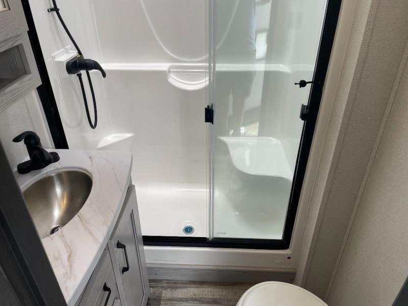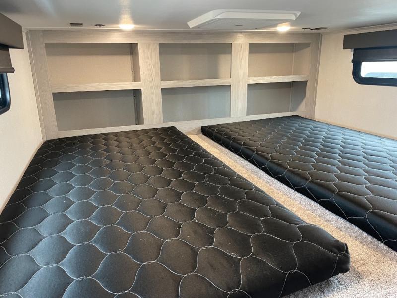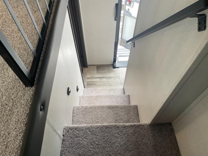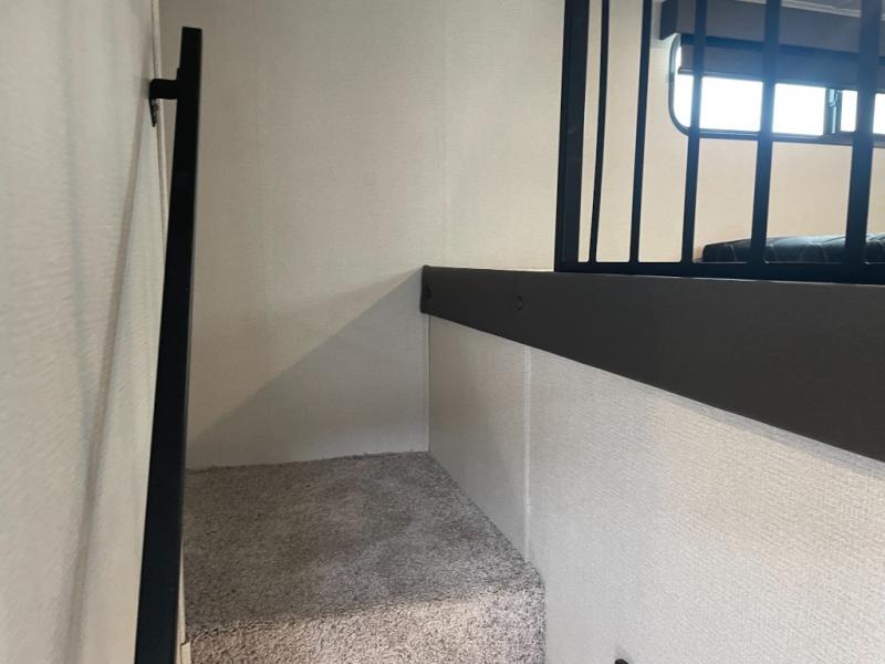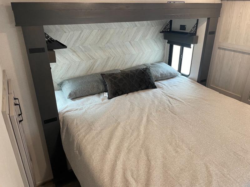 Include all of your favorite people on your next adventure in this Montana High Country fifth wheel! Not only is there a rear private bedroom with a king-size bed for you, but there is also a loft above with stairs that take you to the bunk mats. Now your kids will have their own space too. You can even host a few other travelers up front in the separate living room on the two hide-a-bed sofas. This area will be perfect for cozy sleeping because of the fireplace, and you can even watch a movie as you drift off to sleep because of the 50" LCD TV too. The full bathroom has a pivot-hinge door and a 48" x 30" shower with seat, and the kitchen has a breakfast bar that you can sit at to eat your cereal each morning