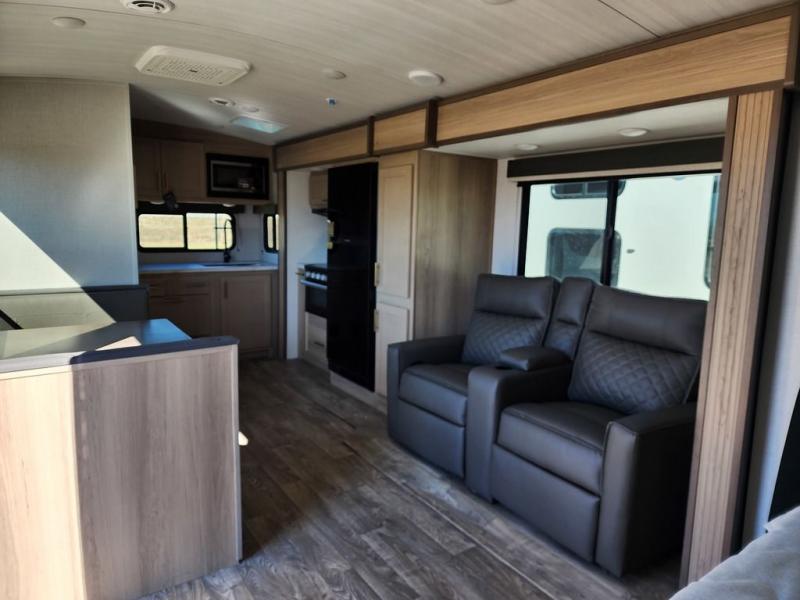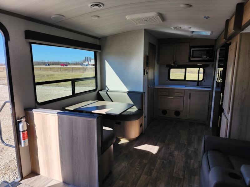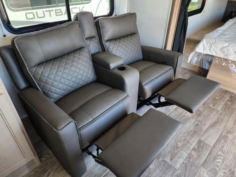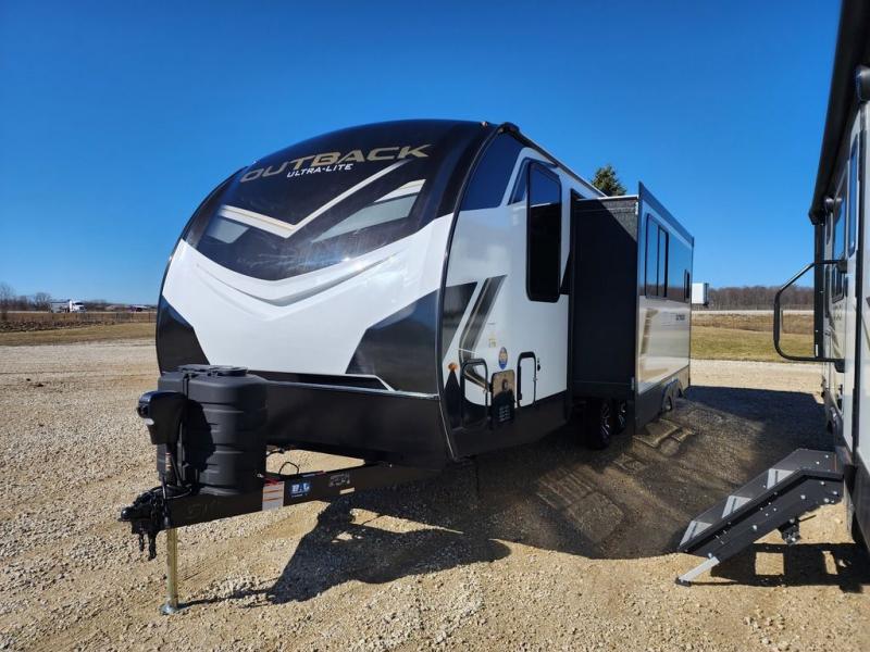With any Outback Ultra Lite travel trailer or toy hauler by Keystone, you begin with a BAL Norco huck bolted "Z" channel frame, which is one of the most durable lightweight frames in the industry. There is also a pinch rolled laminated gel-coated fiberglass exterior, a leaf spring suspension system, large panoramic black framed tinted safety glass windows, plus a power tongue jack and LCI power stabilizing jacks for easy setup. You will appreciate the SolarFlex Protect 200 that comes standard, or you can choose the optional SolarFlex Discover 400i for even more off-grid capabilities! The interior offers pre-drilled and screwed hand-glazed modern cabinetry, extra tall slide height for maximum space, in-floor heating ducts, a Dream dinette with max-store for more storage space, and an on-demand hot water heater to mention a few highlights. Make your lightweight towing decision today, choose a comfortable and stylish Outback Ultra Lite today!