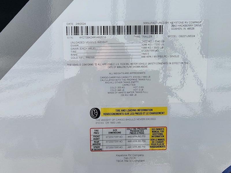 New 2024 Keystone RV Outback Ultra Lite 221UMD Travel Trailer