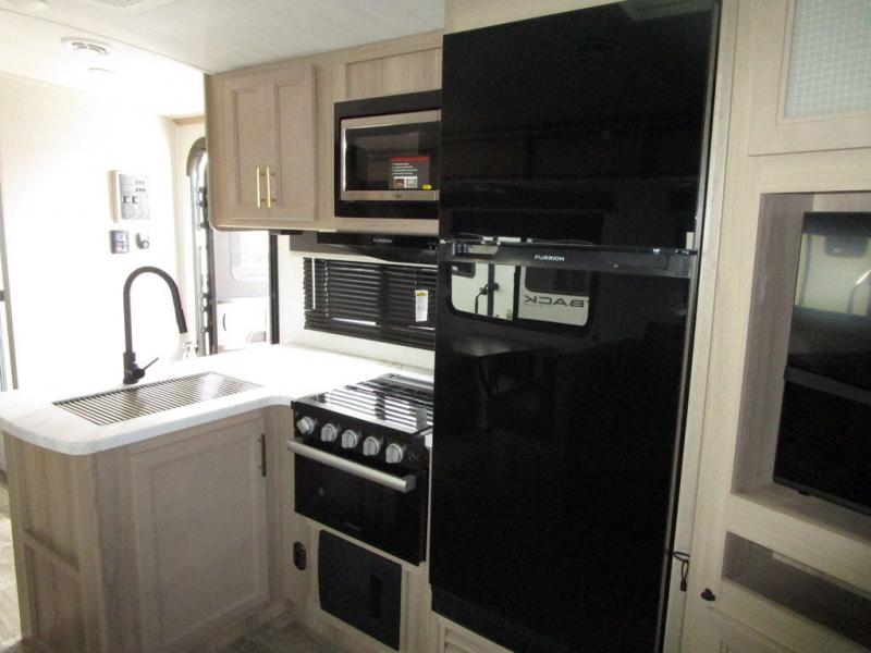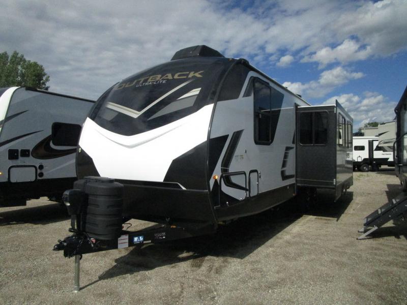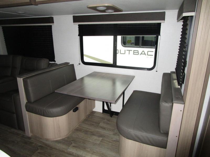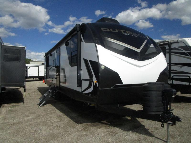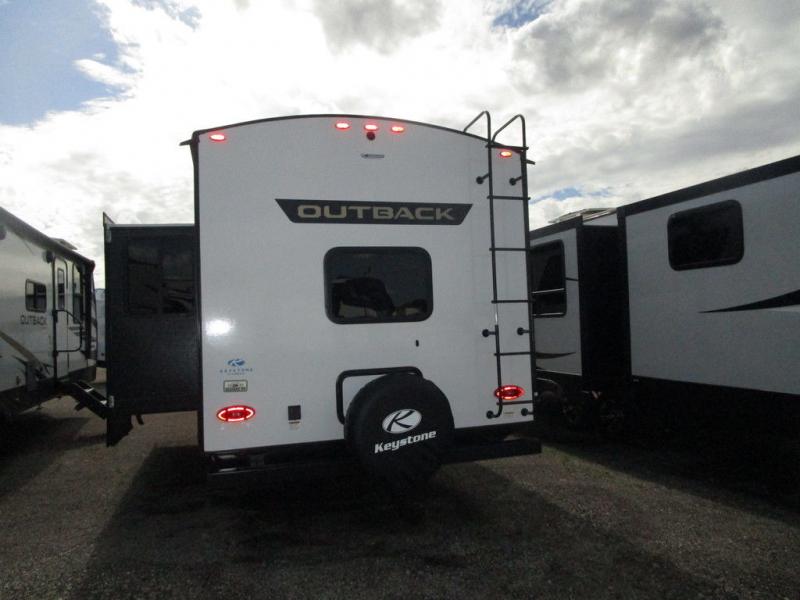 With any Outback Ultra Lite travel trailer or toy hauler by Keystone, you begin with a BAL Norco huck bolted "Z" channel frame, which is one of the most durable lightweight frames in the industry. There is also a pinch rolled laminated gel-coated fiberglass exterior, a leaf spring suspension system, large panoramic black framed tinted safety glass windows, plus a power tongue jack and LCI power stabilizing jacks for easy setup. You will appreciate the SolarFlex Protect 200 that comes standard, or you can choose the optional SolarFlex Discover 400i for even more off-grid capabilities! The interior offers pre-drilled and screwed hand-glazed modern cabinetry, extra tall slide height for maximum space, in-floor heating ducts, a Dream dinette with max-store for more storage space, and an on-demand hot water heater to mention a few highlights. Make your lightweight towing decision today, choose a comfortable and stylish Outback Ultra Lite today!