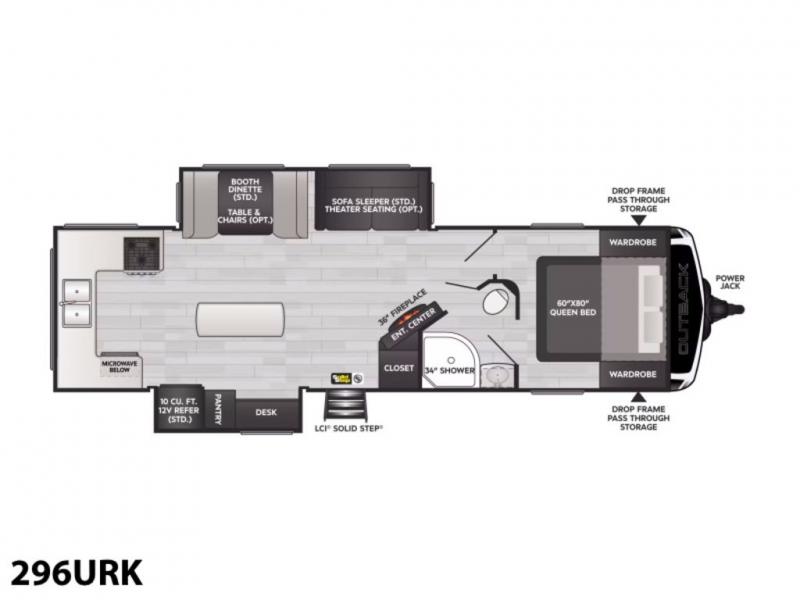 Keystone Outback Ultra Lite toy hauler 296URK highlights:
