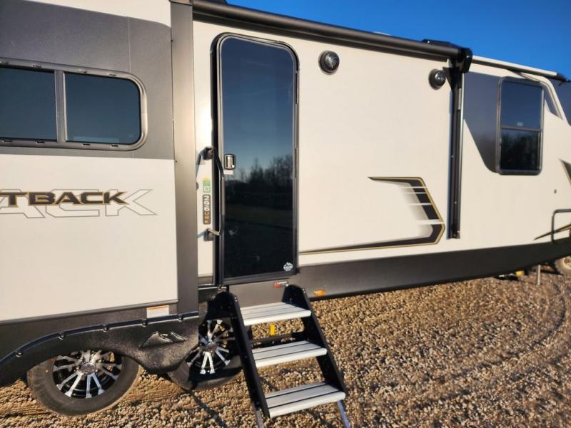 With any Outback Ultra Lite travel trailer or toy hauler by Keystone, you begin with a BAL Norco huck bolted "Z" channel frame, which is one of the most durable lightweight frames in the industry. There is also a pinch rolled laminated gel-coated fiberglass exterior, a leaf spring suspension system, large panoramic black framed tinted safety glass windows, plus a power tongue jack and LCI power stabilizing jacks for easy setup. You will appreciate the SolarFlex Protect 200 that comes standard, or you can choose the optional SolarFlex Discover 400i for even more off-grid capabilities! The interior offers pre-drilled and screwed hand-glazed modern cabinetry, extra tall slide height for maximum space, in-floor heating ducts, a Dream dinette with max-store for more storage space, and an on-demand hot water heater to mention a few highlights. Make your lightweight towing decision today, choose a comfortable and stylish Outback Ultra Lite today!