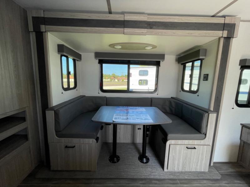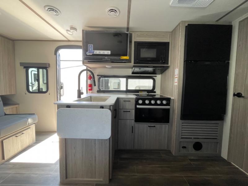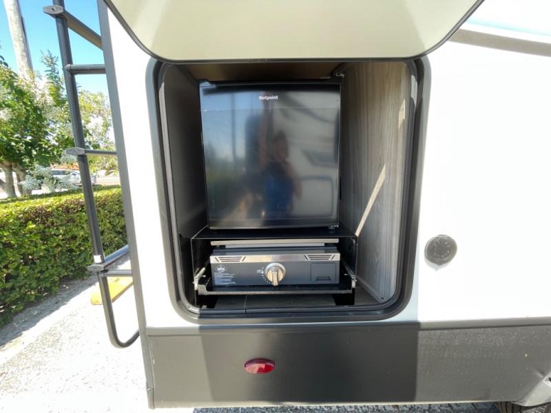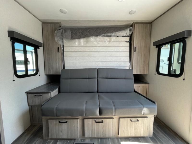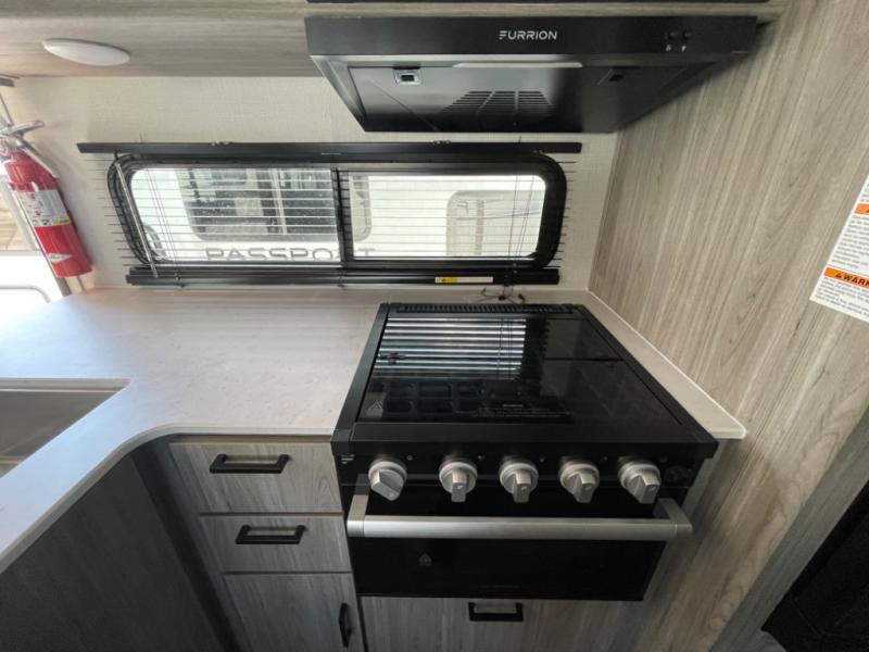 This Passport SL travel trailer is your ticket to paradise! It has a functional living space since both the U-shaped dinette and Murphy bed can reposition whenever needed, and when you put away the Murphy bed, you'll find that there is a sofa in its place. You could even switch out the dinette for an optional theater dinette. Just outside the rear bathroom is a large wardrobe so that you can keep your toiletries stored close to the bathroom. Not only does this trailer have a full indoor kitchen, but it also offers you an outdoor kitchen with a pull-out cooktop so that you can enjoy some sunshine while you cook.