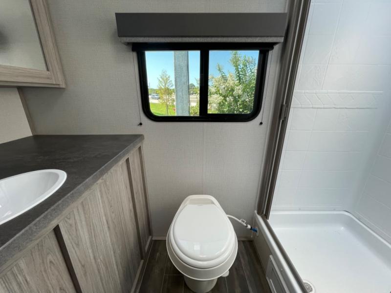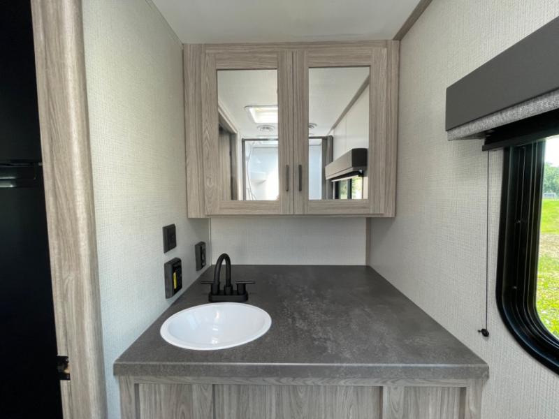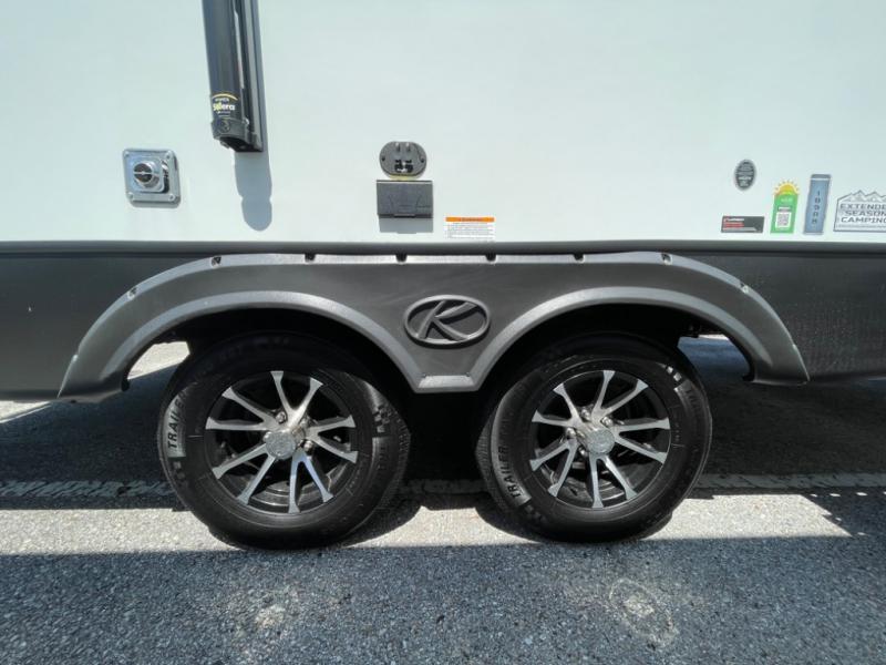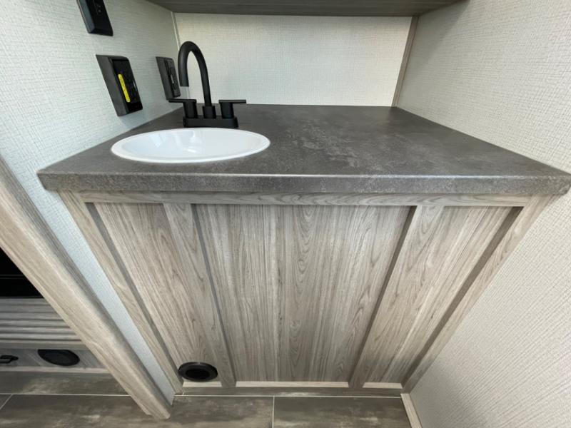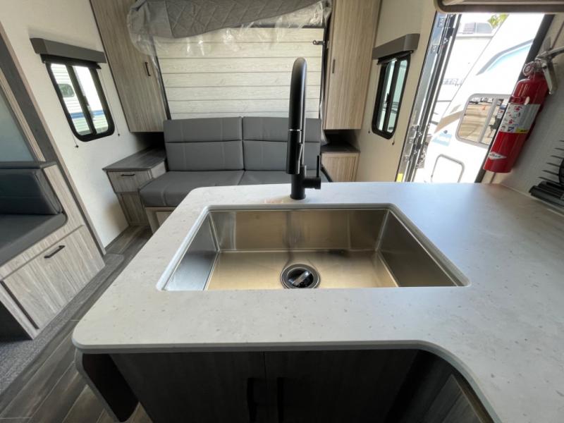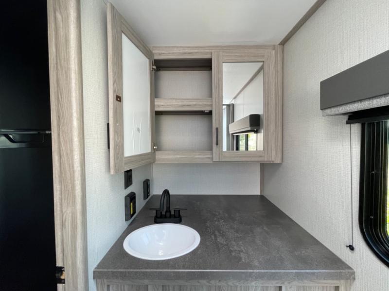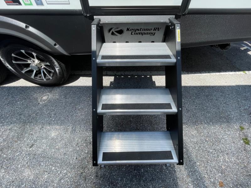 The Passport SL travel trailers by Keystone RV come in a compact design with travel-friendly lengths that are lightweight and easy to tow behind many smaller crossover SUVs. You will find several residential-style features such as durable Beauflor® vinyl flooring, upgraded window treatments and valances, and bathroom countertops. The exterior shower with hot and cold water is very useful as you get cleaned up before entering the RV, wash your pets, or even rinse a few dishes outside. The Passport also now contains a HyperDeck flooring system which is a high-performance, water-resistant RV floor that comes as a breakthrough design from the Keystone Innovation Lab. This flooring is more resilient, stronger, and lighter than traditional laminated wood construction.