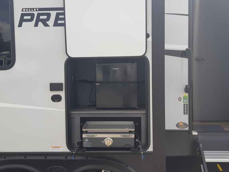 Camp better in any one of these Keystone RV Premier Ultra Lite travel trailers! They may be light in weight, but they still pack in all of the "glamping" features. The fully walkable roof comes with a one-piece TPO roof membrane and the full front cap comes with KeyShield automotive grade paint and protective liner to help it endure the rigors of the road. Power stabilizer jacks get rid of the hassle that manual crank jacks cause, simply stabilize it at the touch of a finger. The easily accessible docking station has water connections, water heater bypass, KeyTV hookups, stabilizer jack switches, and winterization access. You will notice the HyperDeck flooring is stronger, lighter, and more resilient than the traditional wood laminated flooring. A few Keystone exclusive features you will appreciate include a Tru-fit slide construction, Tuf-Lok thermoplastic duct joiners, color-coded unified wiring, and 4G LTE and WiFi prep. See which one fits your needs today!