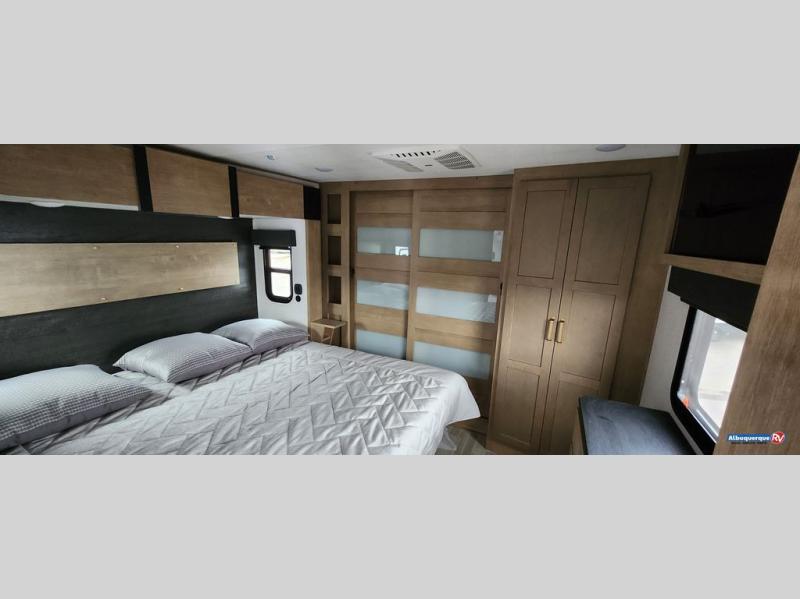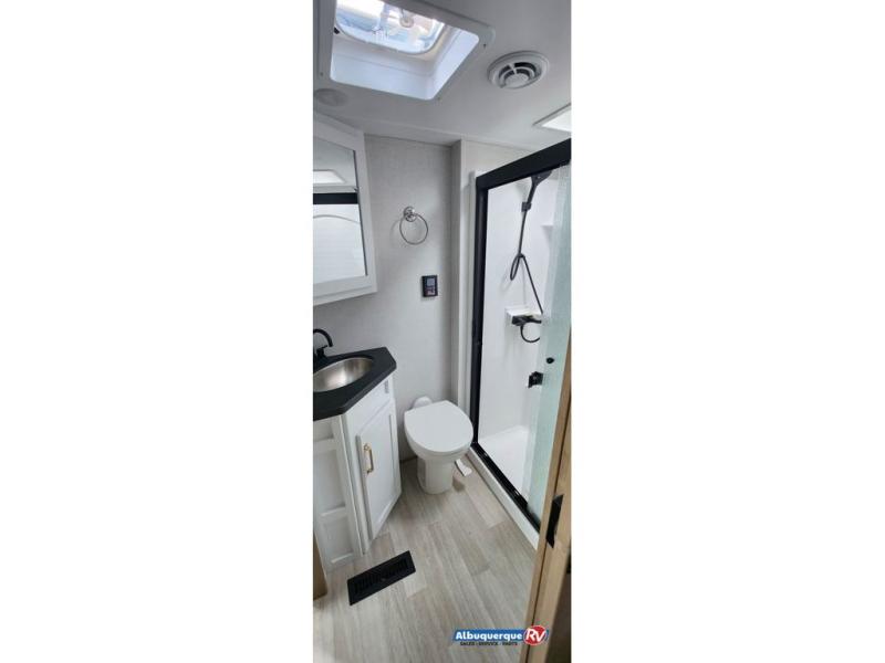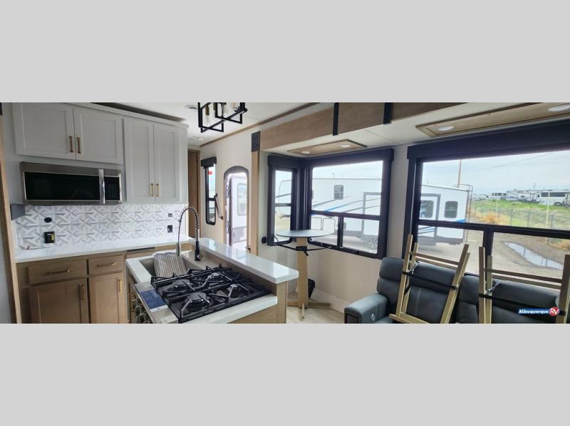 With a 15' garage area, you can bring your favorite off-road toys in this toy hauler! The zero gravity ramp door makes it easy to load them up and once you have arrived you can set up the dual opposing sofas with a table in between, the electric bed above them, and the loft with a twin bed, plus there is even a half bathroom and one of the dual entry doors to the unit. While the chef is preparing dinner on the Insignia cooktop at the kitchen island two others can sit at the 30" pub table to play a game or simply socialize all together. When mother nature is raining on your parade, relax on the two seat recliners with heat, massage, and USB, and enjoy the entertainment center with fireplace and 55" Vizio smart LED TV. The master suite will have you feeling right at home with a king bed slide, a large wardrobe with an area next to it prepped for a washer and dryer, and an entrance into the dual entry bathroom which has a 40" x 28" shower to freshen up in each morning!