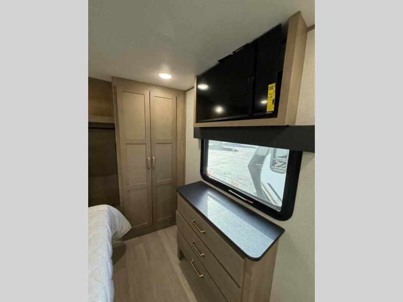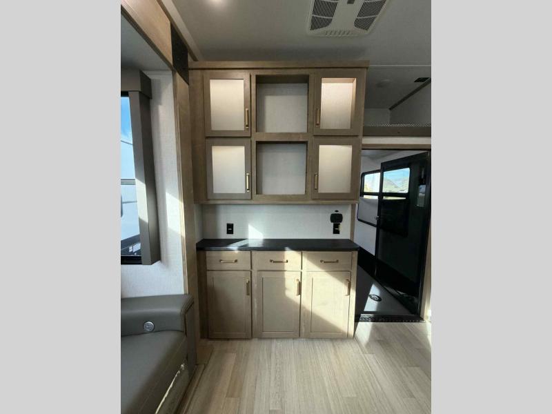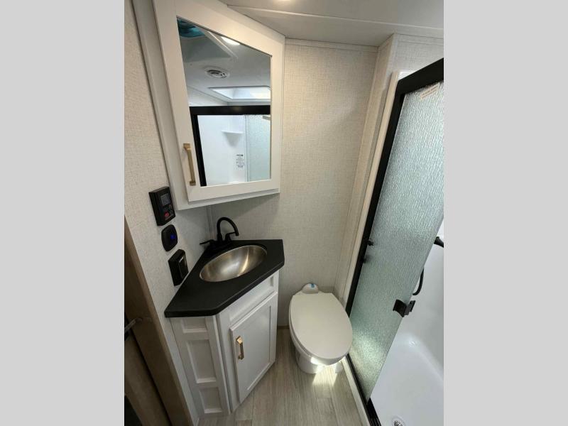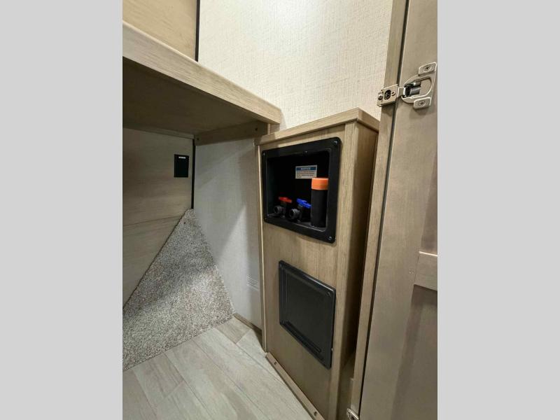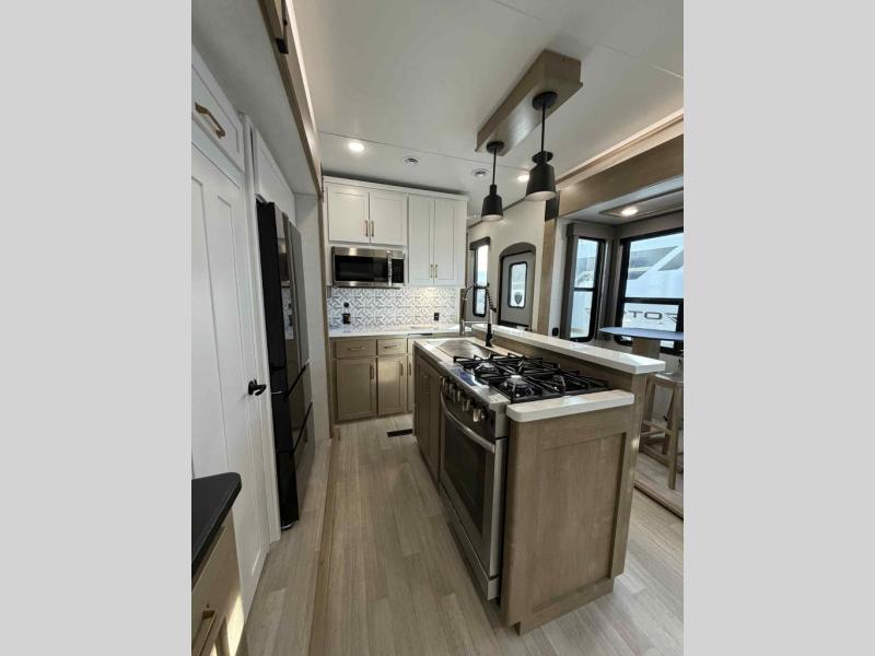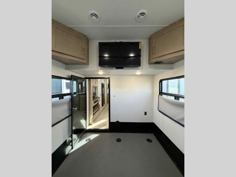 With a 15' garage area, you can bring your favorite off-road toys in this toy hauler! The zero gravity ramp door makes it easy to load them up and once you have arrived you can set up the dual opposing sofas with a table in between, the electric bed above them, and the loft with a twin bed, plus there is even a half bathroom and one of the dual entry doors to the unit. While the chef is preparing dinner on the Insignia cooktop at the kitchen island two others can sit at the 30" pub table to play a game or simply socialize all together. When mother nature is raining on your parade, relax on the two seat recliners with heat, massage, and USB, and enjoy the entertainment center with fireplace and 55" Vizio smart LED TV. The master suite will have you feeling right at home with a king bed slide, a large wardrobe with an area next to it prepped for a washer and dryer, and an entrance into the dual entry bathroom which has a 40" x 28" shower to freshen up in each morning!