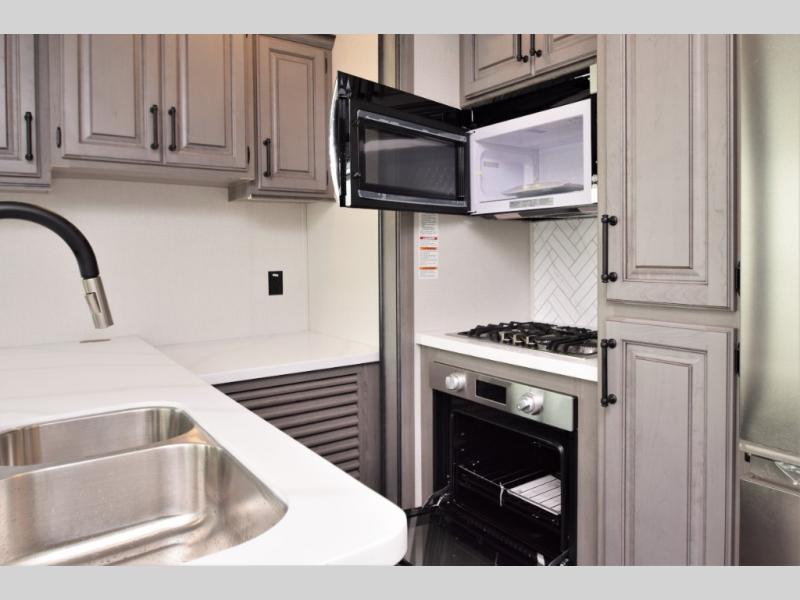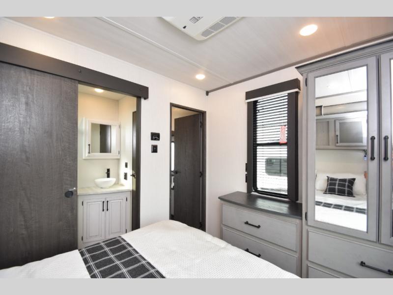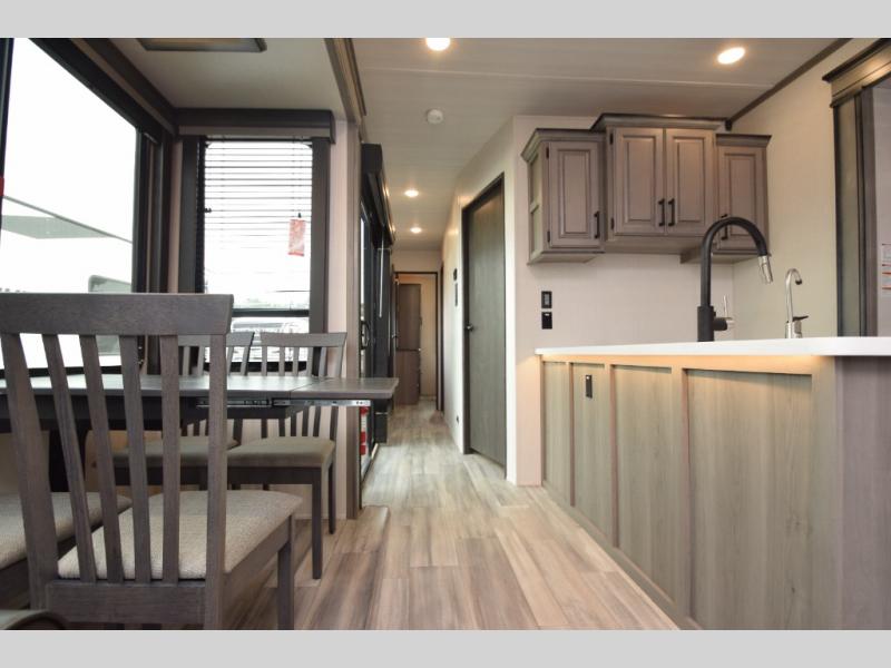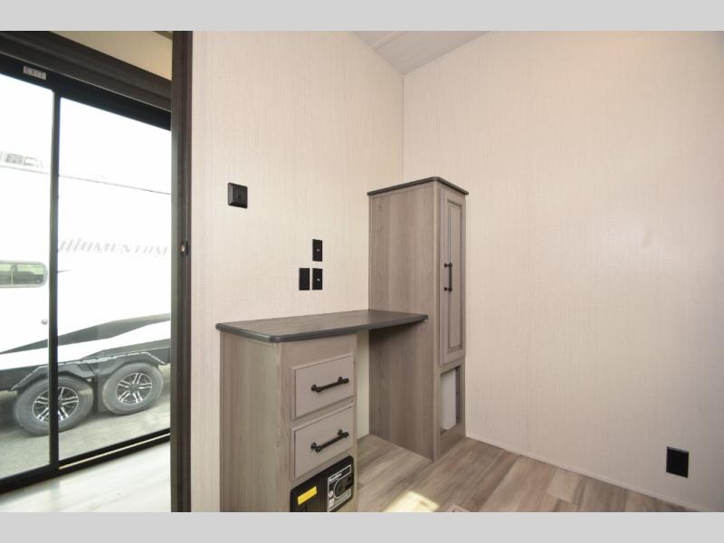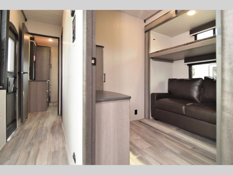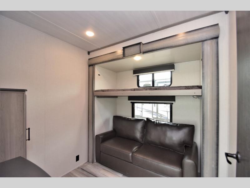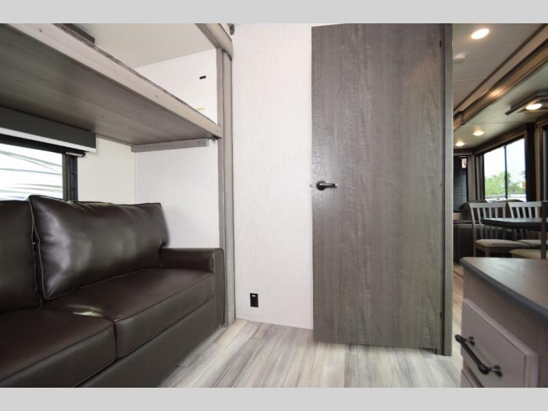 The 401MBNK stands out with a unique mid-bunk layout, making it ideal for families, full-time RVers, or anyone who needs a flexible space for guests, work, or play. From its king-size bed and sliding patio door to the residential appliances and abundant storage, every inch is packed with thoughtful design.