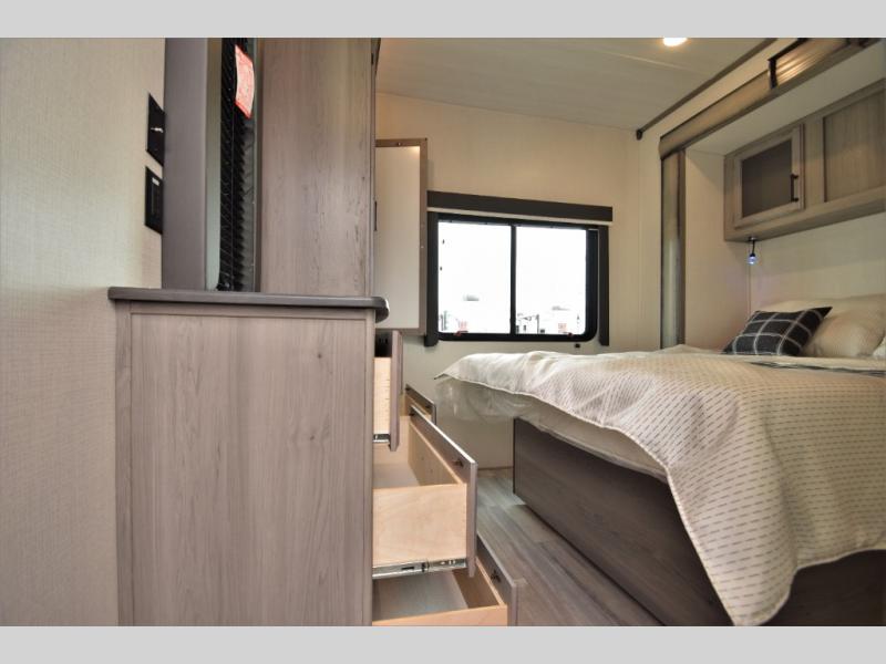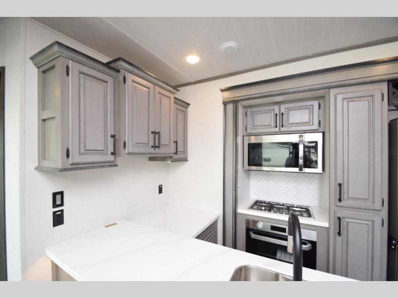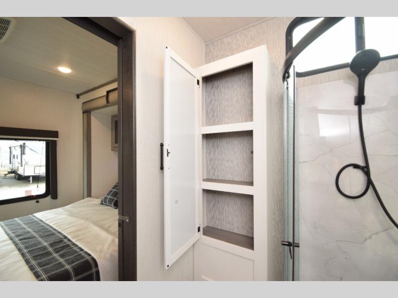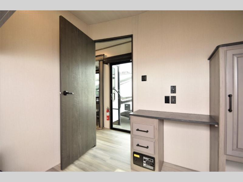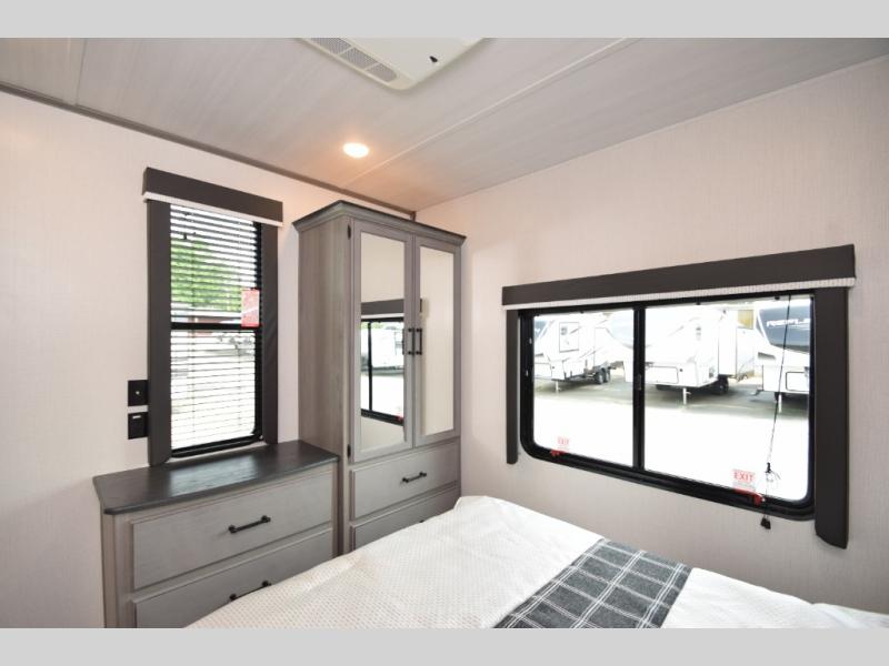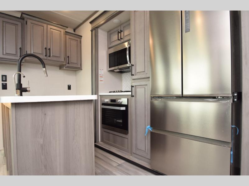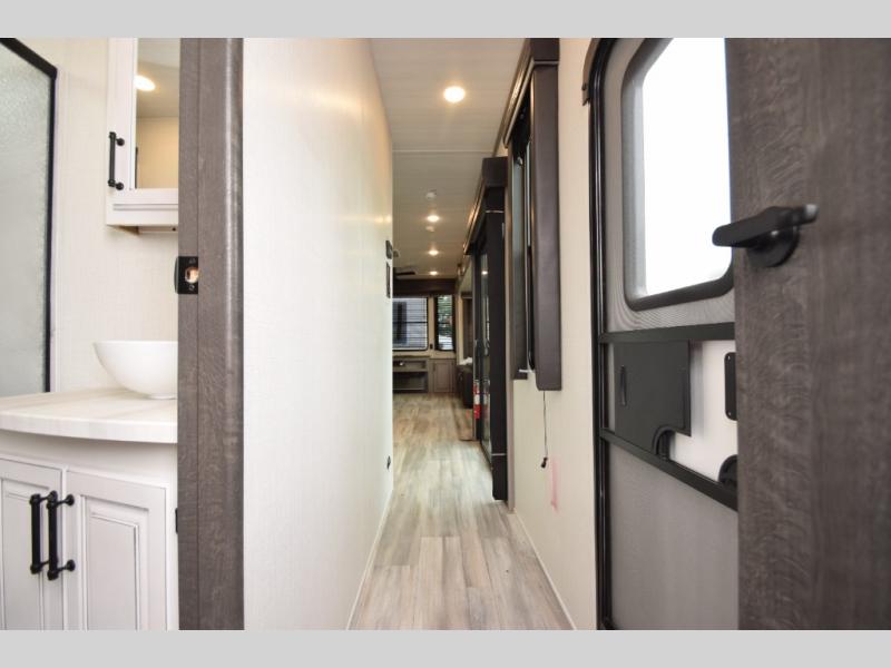 The 401MBNK stands out with a unique mid-bunk layout, making it ideal for families, full-time RVers, or anyone who needs a flexible space for guests, work, or play. From its king-size bed and sliding patio door to the residential appliances and abundant storage, every inch is packed with thoughtful design.