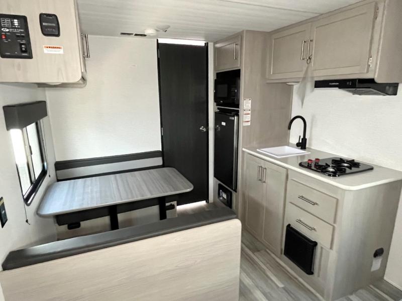 With any Springdale Classic Mini travel trailer by Keystone, you will enjoy lightweight towing thanks to their single-axle! You'll find the XL entry assist handle will make entering and exiting your unit easier than ever, and the power awning will provide protection from the sun as you relax in your camp chairs outside. The interior is made bright and open thanks to the LED lighting and each model includes cozy sleeping space, ample storage, and seating spaces for your crew. There are also additional features found on select models, so come take a look!