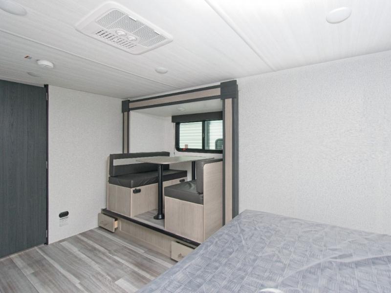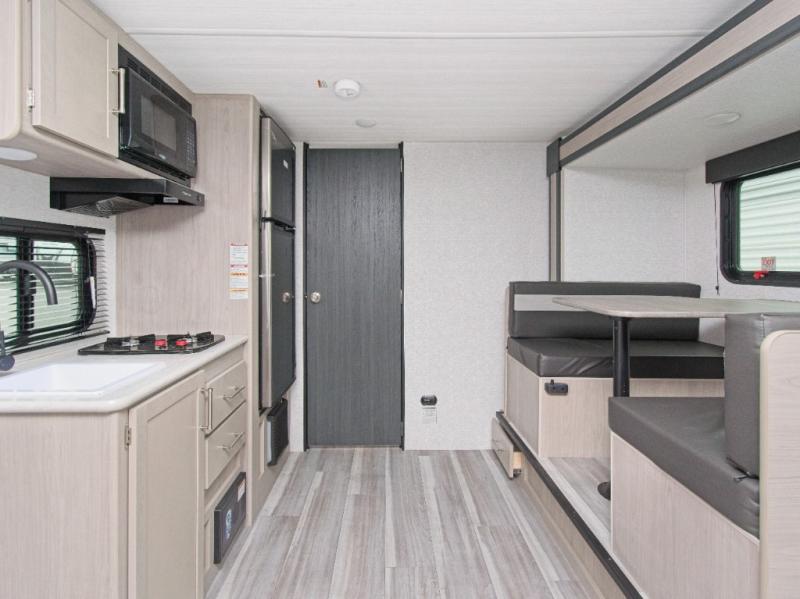 The Springdale Mini 1790FQ features an incredibly efficient use of space with a well-thought-out floor plan. The front queen-size bed provides a comfortable sleeping area, while the booth-style dinette can easily be converted into additional sleeping space if needed. This compact yet functional layout maximizes the livable area and makes the most of the space available.
