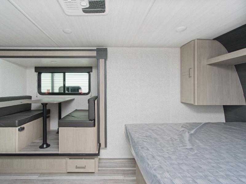 The Springdale Mini 1790FQ is designed to give you a cozy and restful retreat after a day of exploring. The queen-size bed is perfect for a good night’s sleep, while the convertible dinette adds extra versatility for family trips or guests. The well-placed overhead storage and wardrobe ensure all your essentials have a place, keeping your living space tidy and organized.