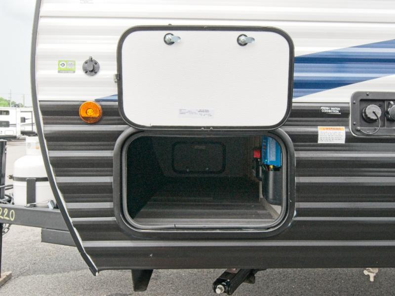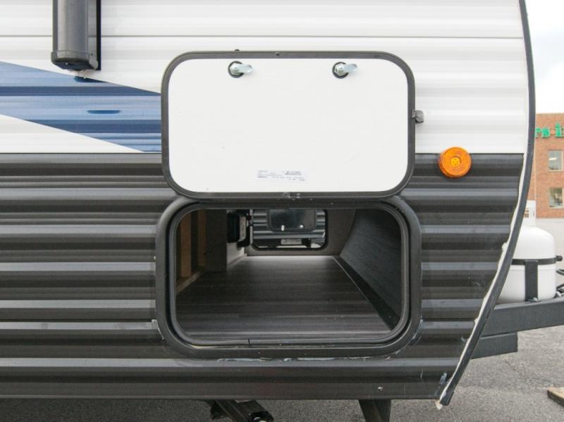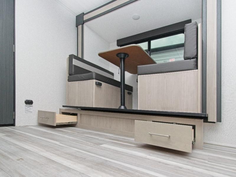 Enjoy the outdoors in style with the power awning for added shade and protection, perfect for relaxing or dining outside. The exterior storage compartments provide ample space for your gear, allowing you to keep everything organized and accessible.