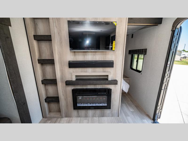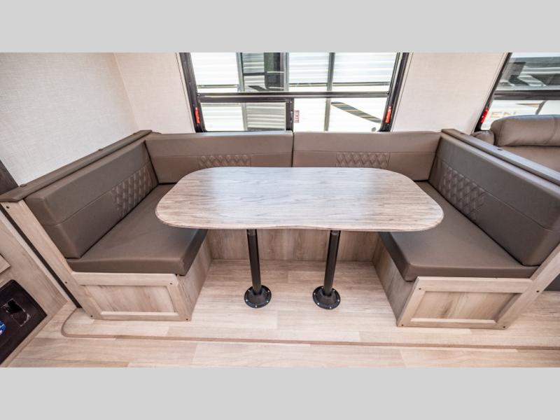 Wow! Take a look at this travel trailer with two private bedroom that include queen beds and space to store your clothes. Each room also has a TV mount if you choose to bring along your own television for late-night movies in bed. The main living area is spacious with the large slide out, and here you can relax on the sofa or around the U-shaped dinette. This model also includes a full bath with a 40" shower that will allow you to clean up each day. And check out the outside kitchen with an outside griddle and a refrigerator!