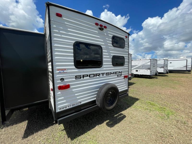 Each Sportsmen SE travel trailer and toy hauler by KZ is constructed with KZ exclusive tough shield exterior metal, a one-piece seamless walk-on Tufflex roofing material, and diamond plate rock guard to protect your unit from road debris. You will appreciate the extra large baggage doors for stowing away your gear when not in use, and tinted windows to help keep the harmful sun rays out plus keeping it cooler inside. Some of the exterior conveniences found in the mandatory Advantage Package are the solid folding steps with a large folding grab handle for easy entry and exit, a full glass friction hinged entry door, plus an exterior shower for your pets or to rinse off before you head inside. You'll also appreciate the nitrogen-filled tires, solar and backup camera prep, plus a Leash Latch with a bonus beverage opener. You'll feel right at home inside with linoleum flooring throughout, a 13,500 BTU air conditioner, large overhead cabinets, a shower surround, and much more!
