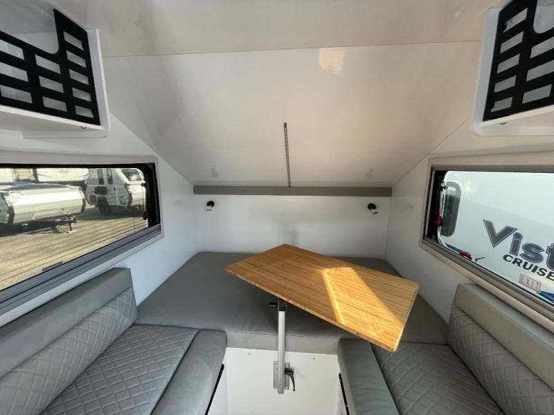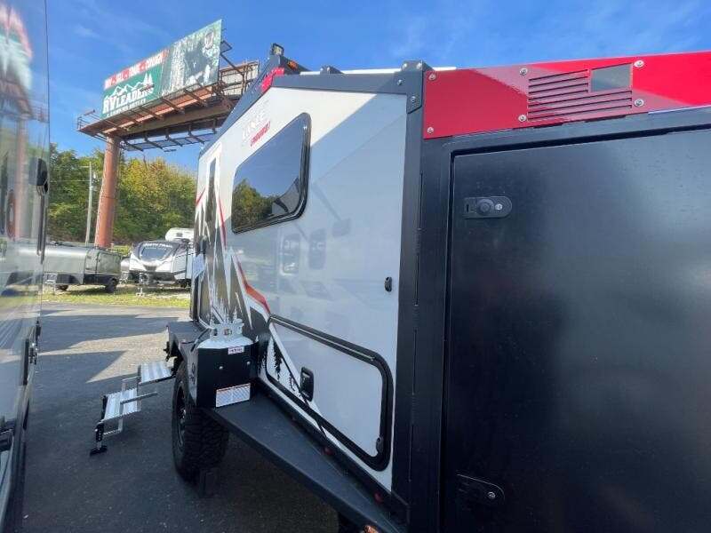 You can have the best of both worlds in this off-road trailer; rugged adventure and comfort! Outside, there is a two burner propane stove, a stainless steel sink, and a 12V/110V portable cooler/refrigerator for perishables, plus a stand-up Truma Combi powered wet bath. You will love the U-shaped dinette that features two seats with a dinette and an 80" x 72" bed size for a great night's rest. A 1500W inverter comes standard, along with a 200W solar panel, or you can choose an optional second solar panel to meet all your power needs!