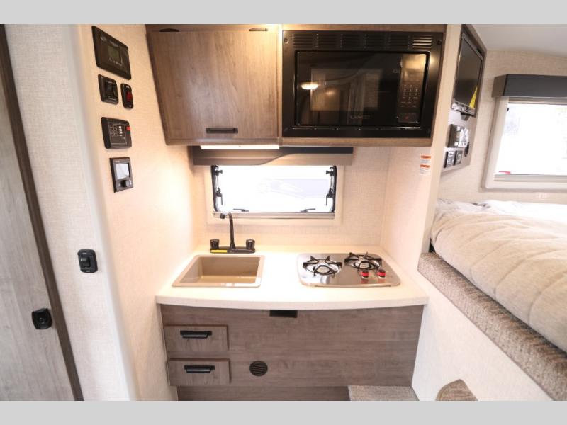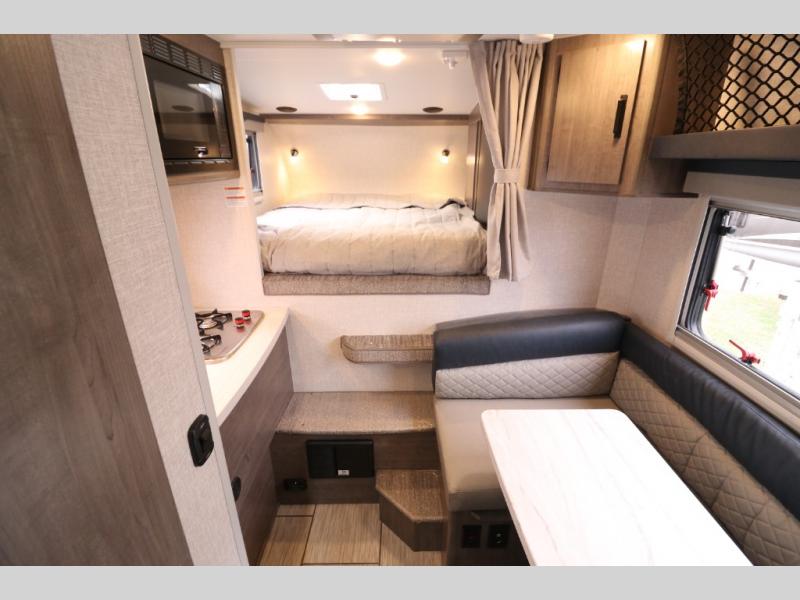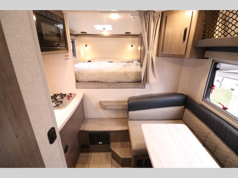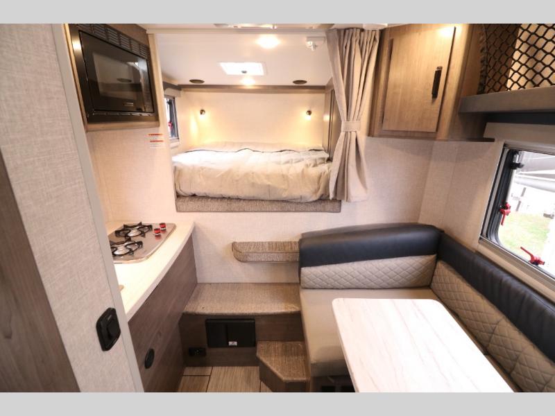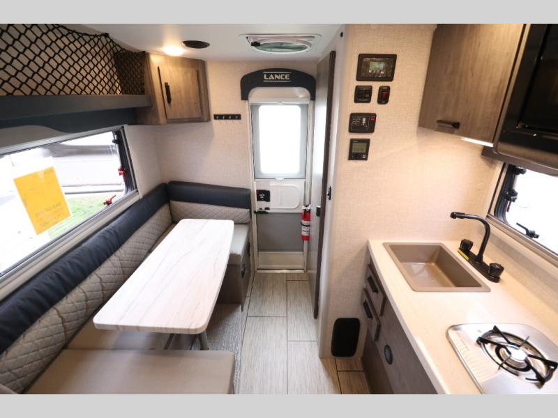 There's no better time than now to start camping in a Lance truck camper! Each model is constructed with a laminated fiberglass bonded exterior, a one-piece roof membrane, and block foam insulation throughout to enjoy four seasons of camping. You'll appreciate a keyless entry, an exterior wash station, electric remote camper jacks, and eye-catching mountain scene graphics. Inside, there are flat panel cabinet doors, Euro window treatments with a combo screen and shade, plus a convenient key hanger. There is also a dual pane bath skylight, a solid surface galley countertop, a stainless steel microwave, plus many more interior comforts. And don't forget to check out the select optional features available to further customize your truck camper!