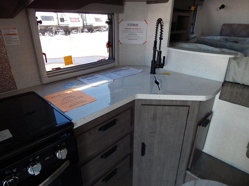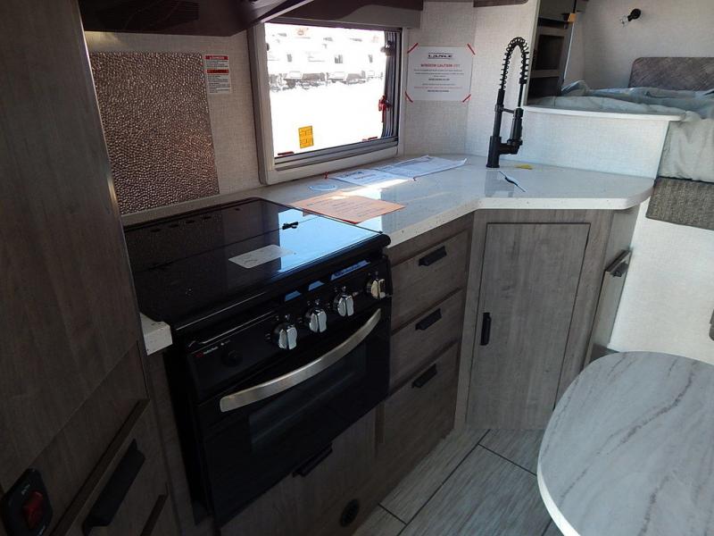 There's no better time than now to start camping in a Lance truck camper! Each model is constructed with a full aluminum frame, a one-piece roof membrane, and block foam insulation throughout to enjoy four seasons of camping. You'll appreciate a keyless entry, an exterior shower, electric remote camper jacks, and eye-catching mountain scene graphics. Inside, there are flat panel cabinet doors, Euro-ply non-toxic cabinet construction, a combo blackout screen and shade, plus a convenient key hanger. There is also a dual pane bath skylight, a solid surface galley countertop, a pop-up charging tower, plus many more interior comforts. And don't forget to check out the select optional features available to further customize your truck camper!