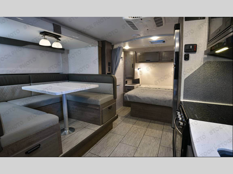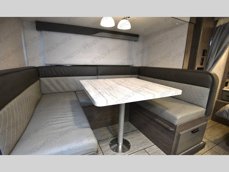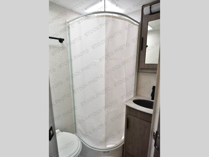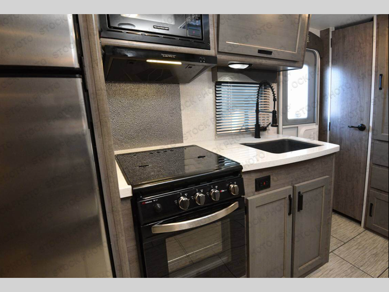 This travel trailer will be perfect for all your many camping excursions. You will enjoy having a walk-around queen bed up front with dual bedroom wardrobes on either side of the bed plus LED reading lights so you can stay up late with your book. A U-shaped dinette slide provides a place to dine and play games, and this can also double as sleeping space for guests. Having a full bath onboard means you won't have to use the camp's facilities at night, and the dual pane bath skylight will provide more natural light and extra headroom. When you've worked up an appetite, the galley includes a stainless steel three burner range with a black glass cover to cook meals and an 8 cu. ft. 12V refrigerator to keep leftovers fresh.