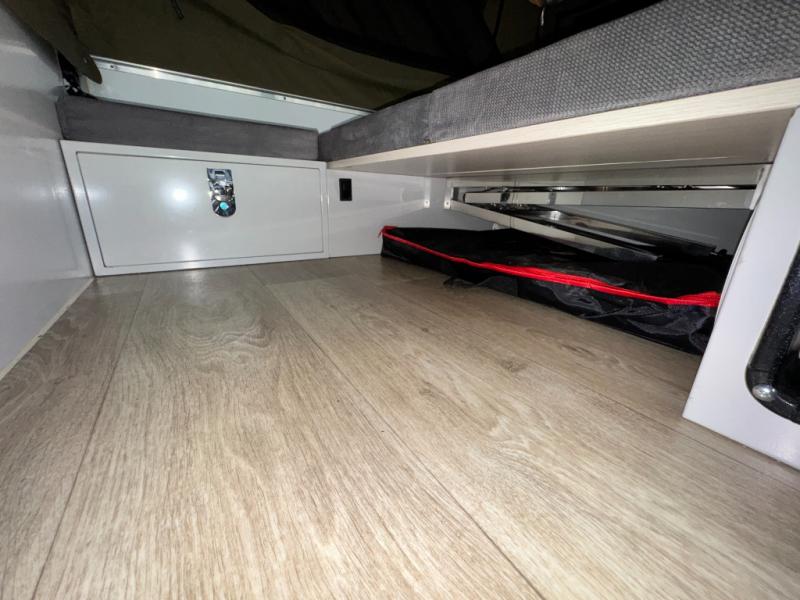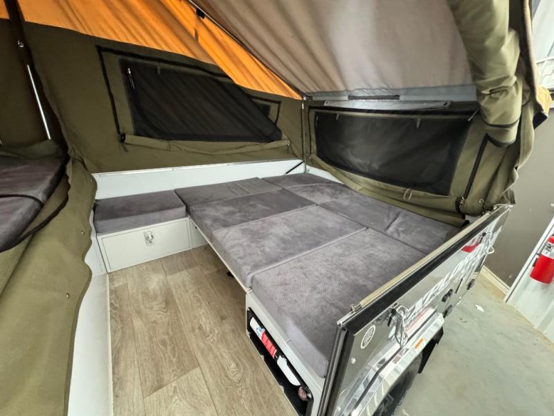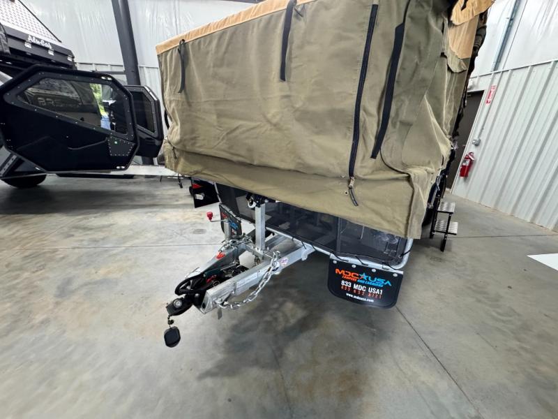 Take your adventures up a notch with the Expedition Series pop-up off-road trailers by MDC USA! Each one is built with a durable welded zinc galvanized frame with bonded zinc coated panels for added strength. You can go off the beaten path with Goodride radial mud tires with two spares, 12" electromagnetic brakes, and X-TRACK independent coil spring suspension with 2X TOUGH TRAX shock absorbers on each side. The tent and annex offers up to 237 sq. ft. of living space between the main tent and fully enclosed annex so you can enjoy more room to relax. Outside, you'll find a removable, side-mounted storage rack, solar power, plus external power outlets to keep you going!