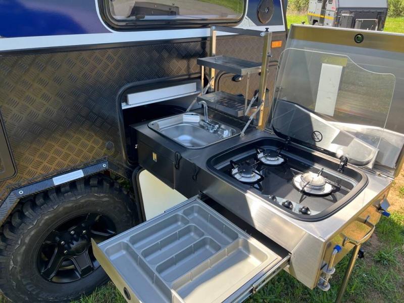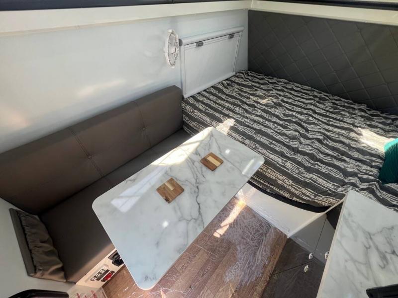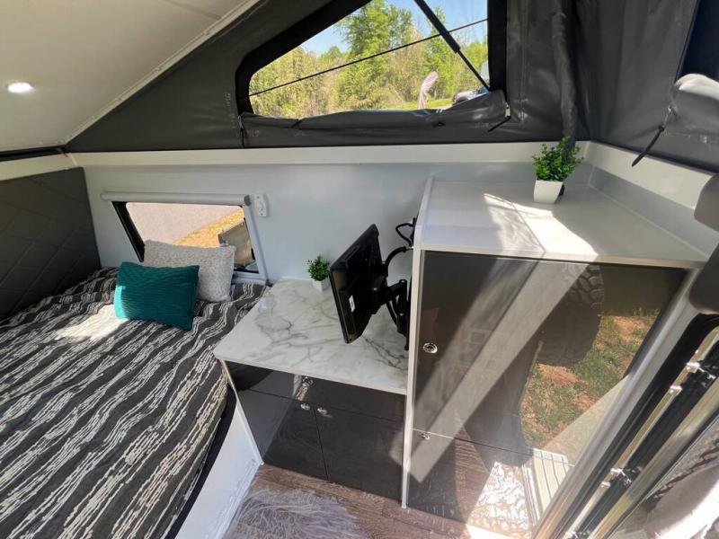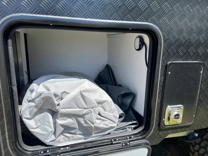 You will enjoy every minute spent in this off-road trailer that can sleep two each night. All of your power needs will be met with 12V charging ports, internal and external outlets, plus (3) 175W solar panels; that's 525 watts of solar power! The propane operated furnace, RV air conditioner, and Truma AquaGo Comfort Plus instant hot water system will be features you won't want to camp without. You are sure to never bored with an HD LED TV with 12V compatibility, USB, and full motion TV bracket.