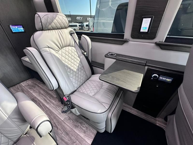 Load up the family or your group of friends in this Daycrusier Class B diesel van which includes six captain's chairs and two sofa/foldout beds with a total of ten seatbelts. Now imagine where everyone will sit while enjoying the luxurious interior, the comfortable seating, and the beautiful highway scenery. Once at your destination, you can all watch movies and shows on the LED HDTV for some down time and eat snacks and meals cooked in the 110V microwave. Your guests will surely enjoy using the wireless head phone system while relaxing on the Maybach-style seating. Don't forget about the convenient private toilet room which includes a sink and a refrigerator. Come see how this model will fit your traveling needs.