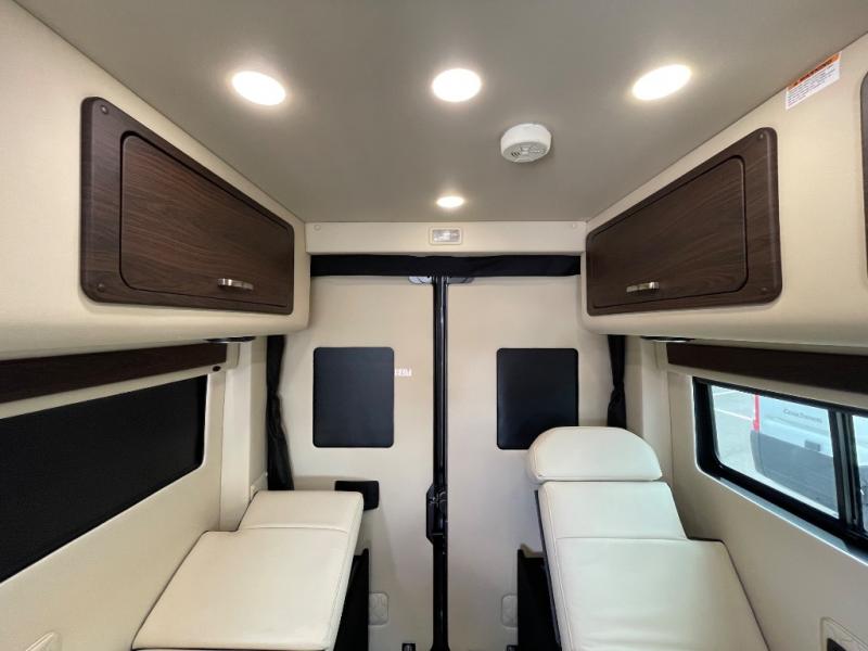 Each Legend Class B gas motorhome by Midwest Automotive Designs offers a Ram ProMaster chassis, a ECO charging system, a 100 watt rooftop solar charging system, a rear hitch with a wiring package if you need to pull a trailer or such, and a rear back-up camera system for easy parking. Inside you can ride and stay in luxury on leather seating while appreciating the custom dash and door handle wood grain upgrade, the custom Maybach style seating with seat belts, and the kitchen amenities to make warm meals. Start traveling today in your own Legend!