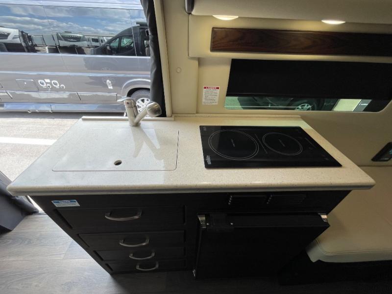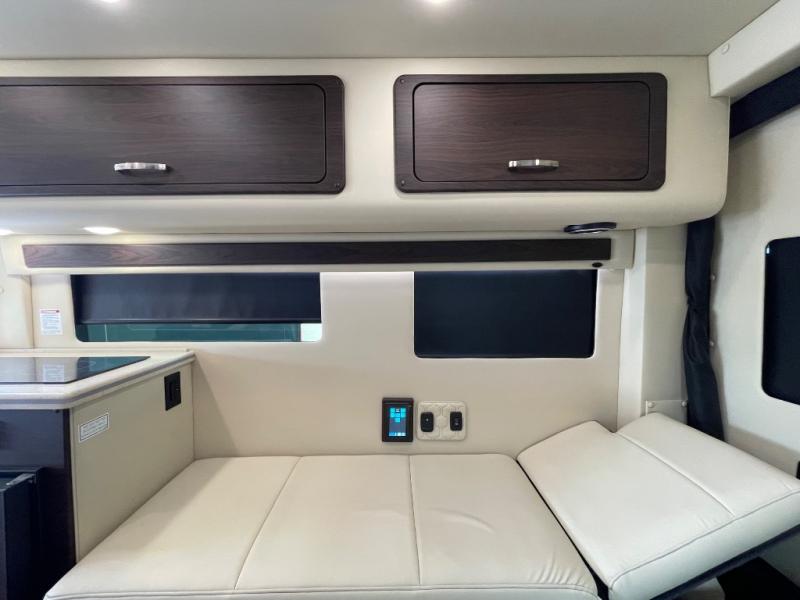 Start traveling like you are driving an SUV yet you will have your own bedding for two to three people once the rear power lounge is set up with the two side sofas for the night. You can watch a movie on the Samsung HD LED Smart TV when you wake up before making breakfast in the convection microwave or on the induction cooktop. You might like to grab a snack from the overhead cabinets instead. And the removable table/dinette will allow you to eat a meal or do some work while sitting comfortably on the leather seating. There is a mid-coach wet bath to stay refreshed and ready for whatever you decide to do next! You might even like to add the Onan 2.2 propane generator option for extra power.