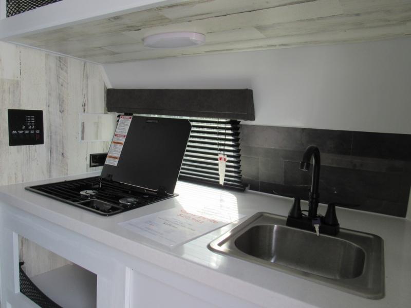 With the Big Buggy teardrop trailer by Modern Buggy RV, you will have all-terrain tires with 14" ground clearance allowing you to venture on bumpy, muddy and off-the-beaten path roads. They are full of modern amenities including LED lights, outlets, and USB charging stations, plus a 13,500 BTU air conditioner and electric heat strip. These models are built on a high quality strength, custom aluminum frame, and are put together with AZDEL ceiling and walls. Get out and explore today with the Big Buggy in tow!