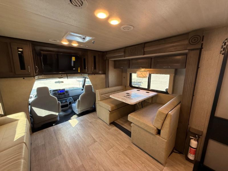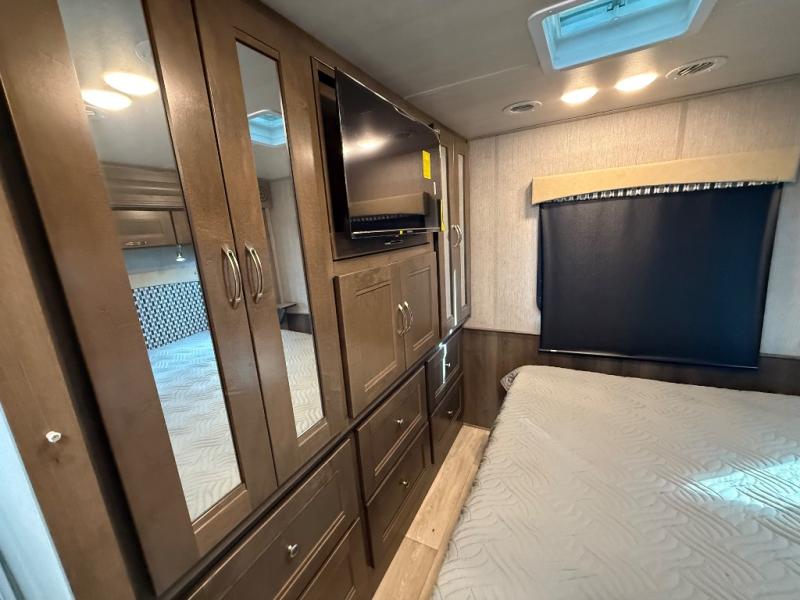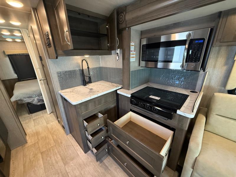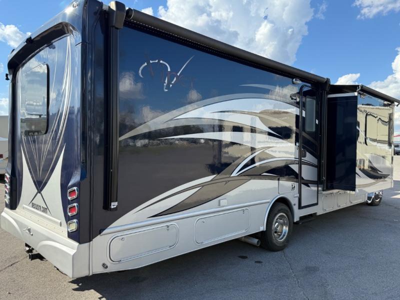Sleeps5 Slides3 Ext Width 8 ft Ext Height 10 ft 7 in Int Height 6 ft 5 in Hitch Weight 500 lbs Fresh Water Capacity 40 gals Grey Water Capacity 28 gals Black Water Capacity 28 gals Furnace BTU 30000 btu Fuel Type Gas Engine Ford V8 Chassis Ford E450 Fuel Capacity 55 galsWheel base 208 in Available Beds RV Queen Refrigerator Type Residential Cooktop Burners 3 Number of Awnings 1 LP Tank Capacity 12.2 gals Water Heater Type Gas/Electric AC BTU 13500 btu TV InfoCab 32" LED TV Awning Info Electric w/LED Lighting Shower Type Radius Electrical Service 30 amp