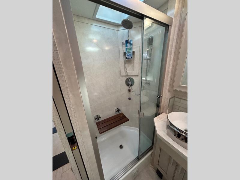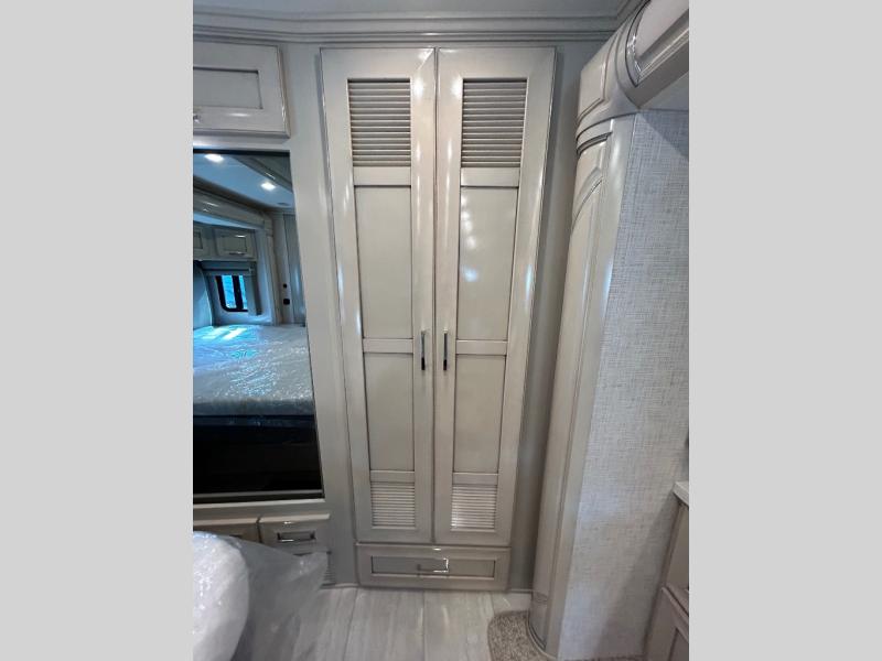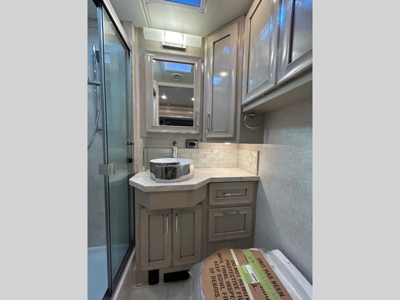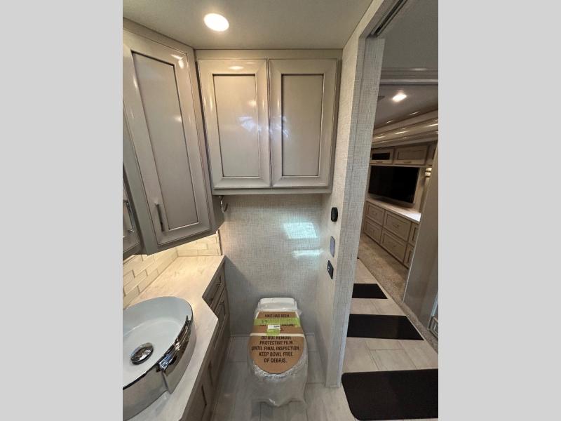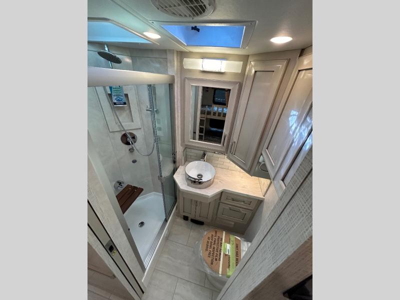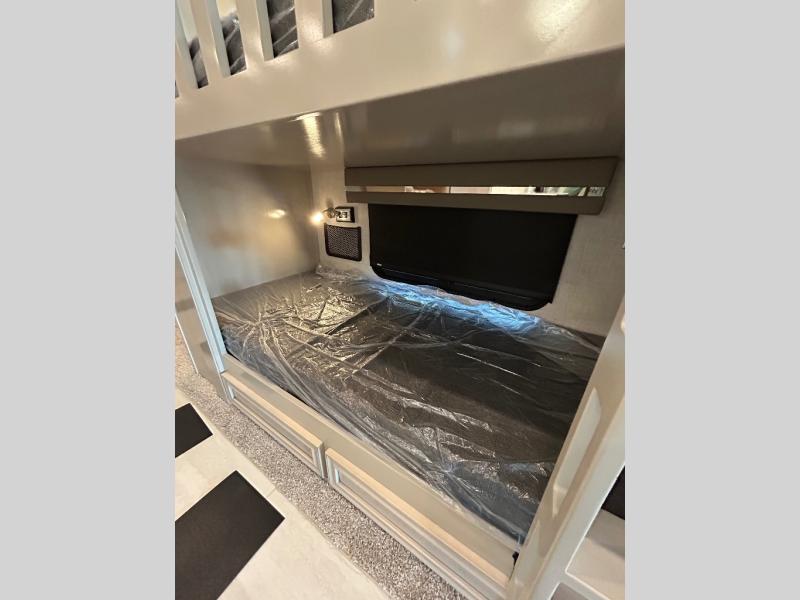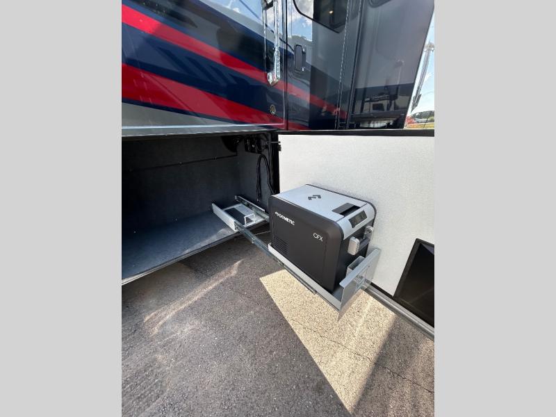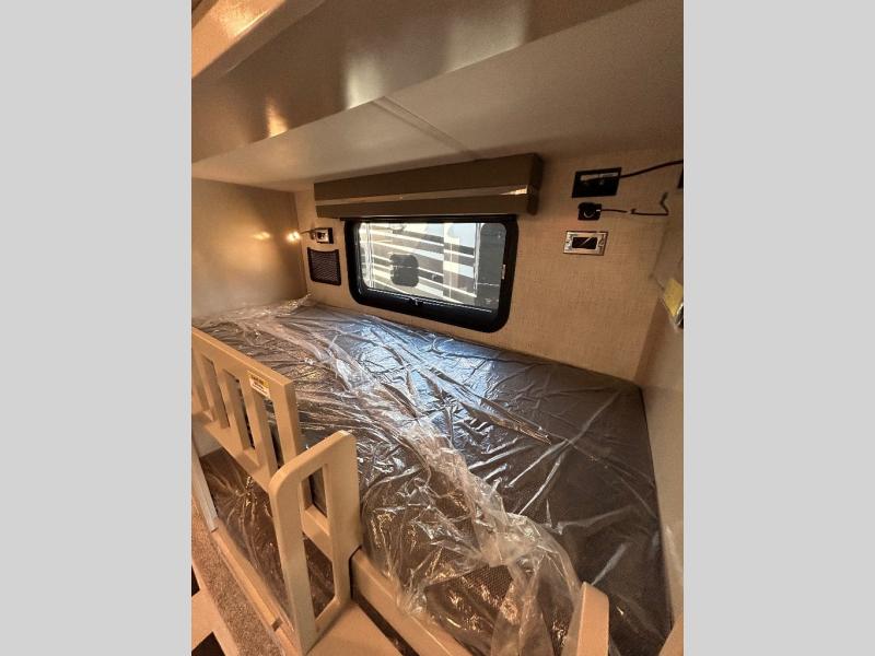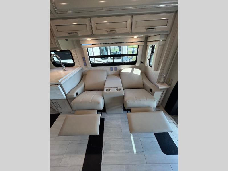 You may want to invite some friends to join you for a weekend of fun in this Super Star Super C diesel motorhome, or you may just want to make it a family event since the bunk beds will be perfect for the kids! Either way, this coach is well equipped for partying. The kitchen is top notch and ready for any chef to step in and create masterful dishes with the all-electric flush-mount induction cooktop, and 19.7-cubic foot refrigerator. The bathroom is full of amenities that will make morning routines as easy as ever, and the private bedroom has a king bed, Samsung LED 4K TV, large dresser, and wardrobe with sliding mirror doors so that you feel right at home.