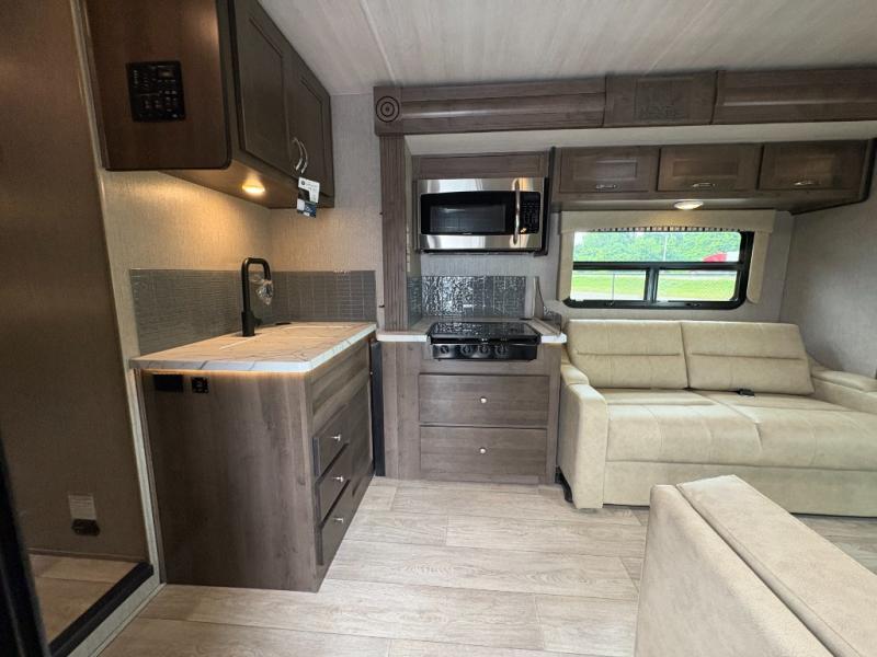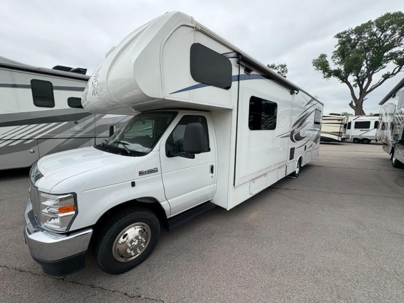 Don't pass by the well-constructed NeXus Phantom Class C gas motorhome! You will be very impressed with its solid and reliable design that will allow you to travel for years and years without any concern. The high-strength low-alloy lightweight steel cage forms the base of every Phantom, and the seamless fiberglass roof adds great protection over your heads. You'll find an outside shower to use whenever you need to get some mud off your shoes, and the Winegard 360 antenna gives you a great solution for your internet needs. You'll even be able to spend some time outside in the afternoon sun because you can use the electric awning with LED lights for a covering when you start to burn.