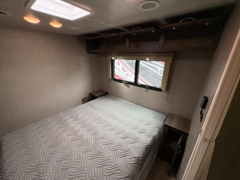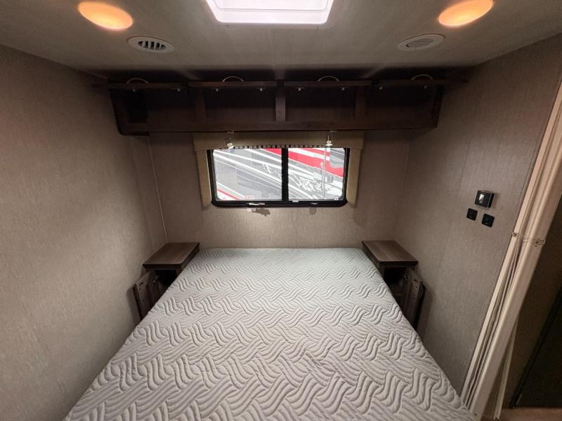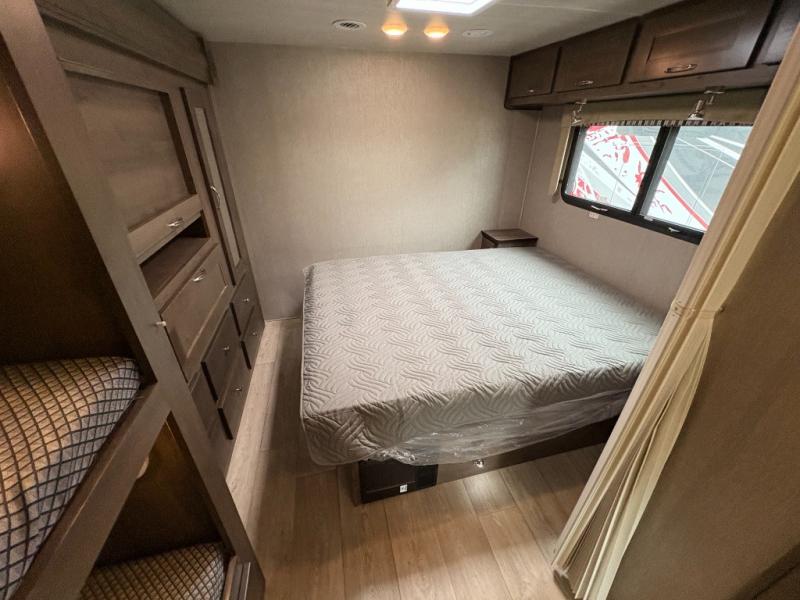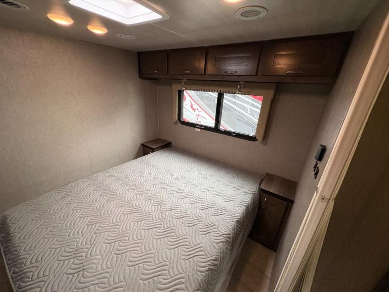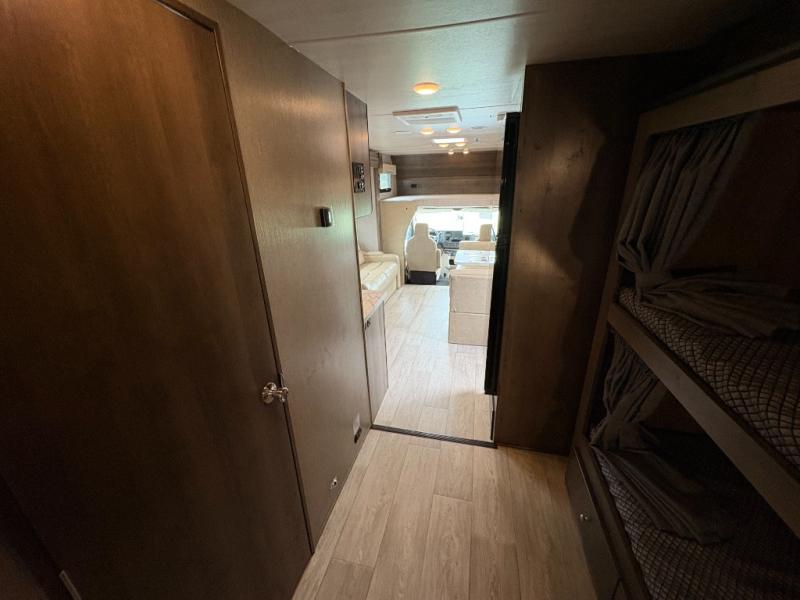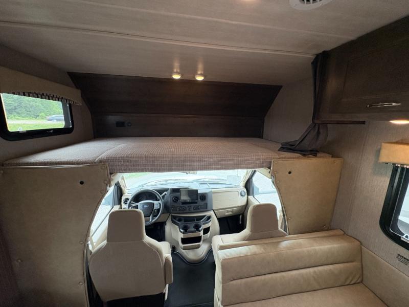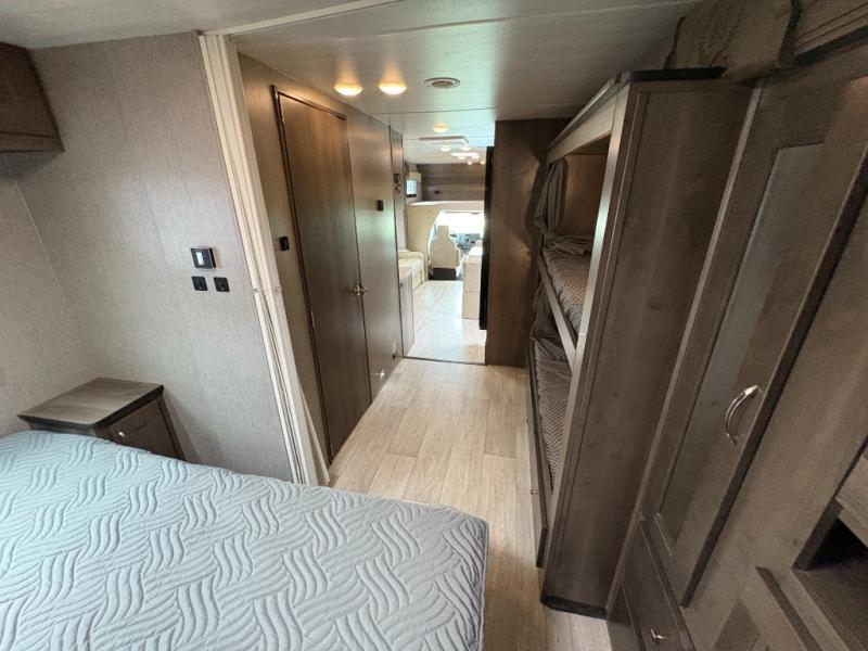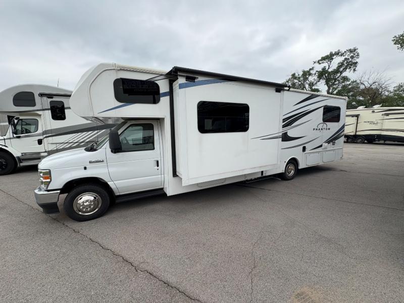Bring along extra family members or friends in this Phantom Class C gas motorhome! The full bathroom allows you and your fellow travelers to stay clean, and the shower skylight allows you to see clearly as you get clean. The booth dinette is a great spot to sit down for breakfast, and there are also two lounge chairs in the main living area for relaxing. If you have a big group, you'll certainly appreciate the set of bunk beds that rest upon a slide across from the bathroom, and the wardrobe closet also rests on this slide next to the bunks and across from the queen-size bed in the bedroom.