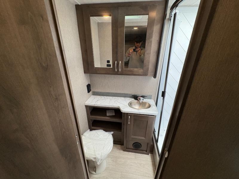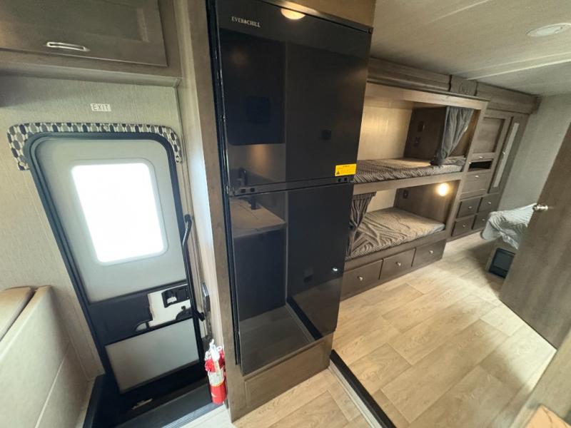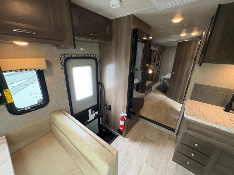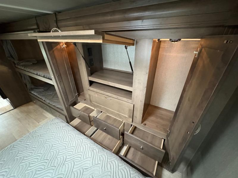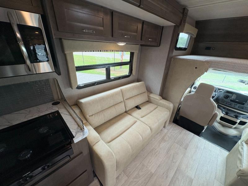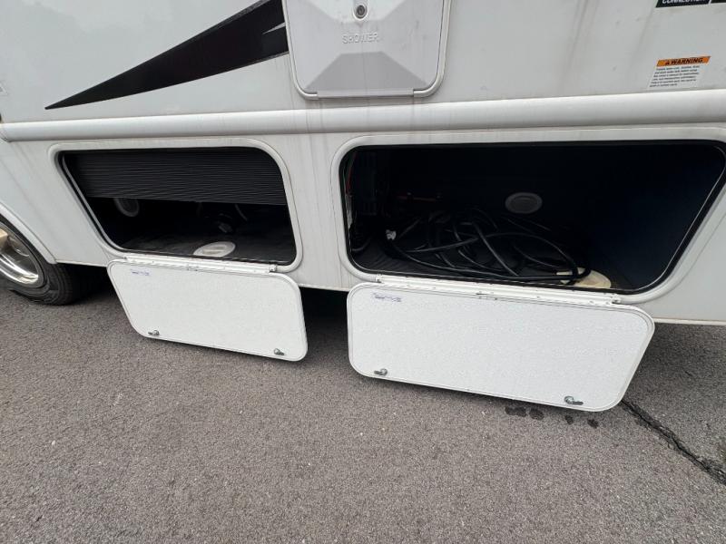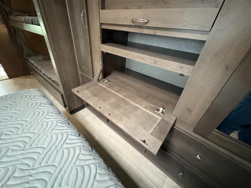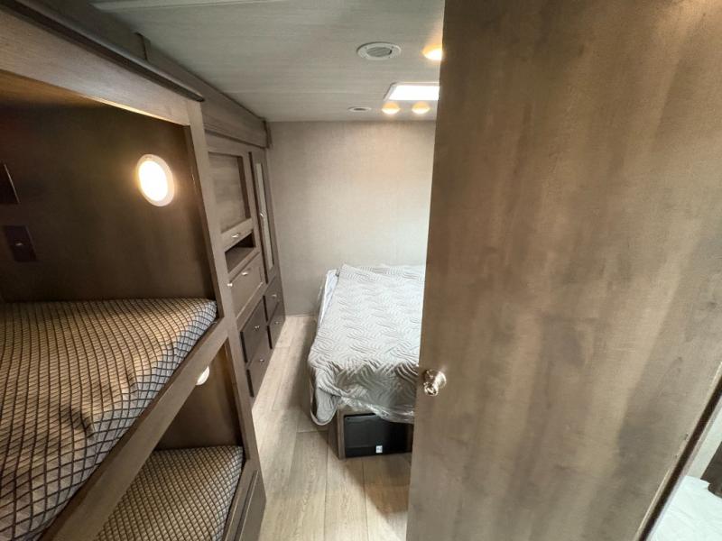 Bring along extra family members or friends in this Phantom Class C gas motorhome! The full bathroom allows you and your fellow travelers to stay clean, and the shower skylight allows you to see clearly as you get clean. The booth dinette is a great spot to sit down for breakfast, and there are also two lounge chairs in the main living area for relaxing. If you have a big group, you'll certainly appreciate the set of bunk beds that rest upon a slide across from the bathroom, and the wardrobe closet also rests on this slide next to the bunks and across from the queen-size bed in the bedroom.
