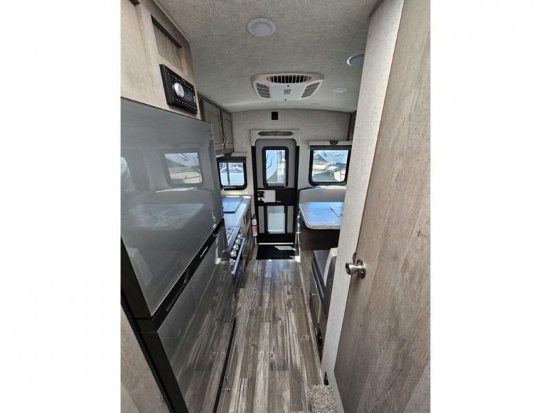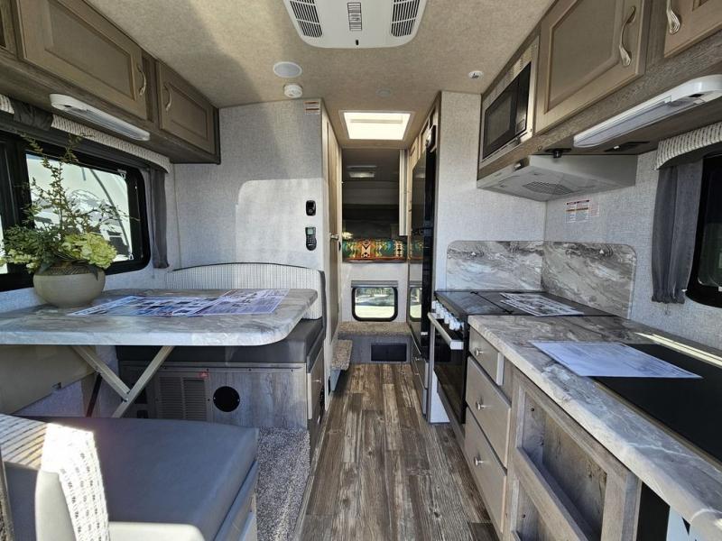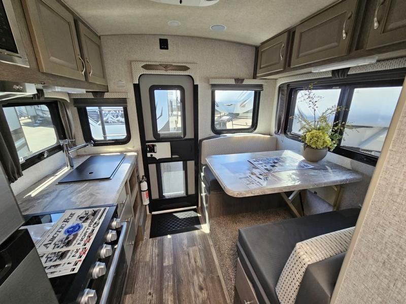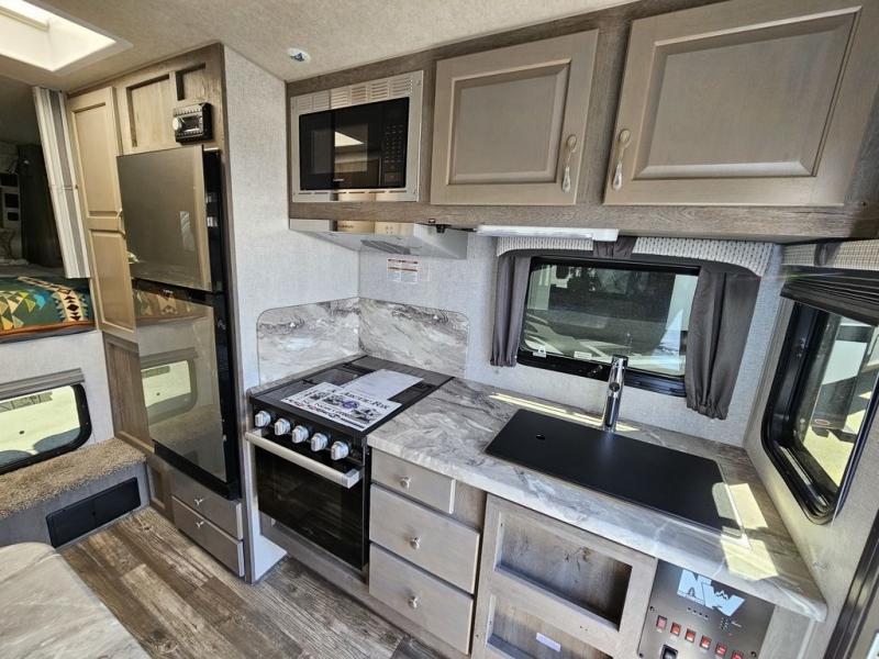 Looking for an easy to setup camper that offers sleeping space for three to four? Once at your destination, there is no slide to worry about, just get dressed and start exploring to return to inside comforts or relax outdoors under the rear electric awning with LED lights before making dinner. The cook will love the stainless steel appliances including the 7 cu. ft. large 2 Way fridge and the single basin sink. You can take turns getting cleaned up in the wet bath which is centrally located for convenience. The front NW TruRest queen mattress gives you sleeping for two with plenty of storage for clothing and two hampers for dirty clothes, and the dinette converts to a 38" x 68" sleeping area.