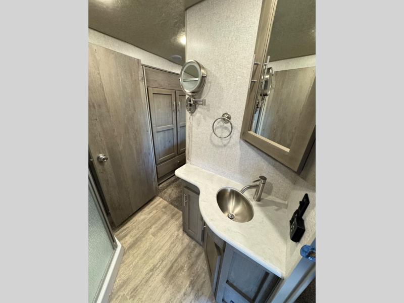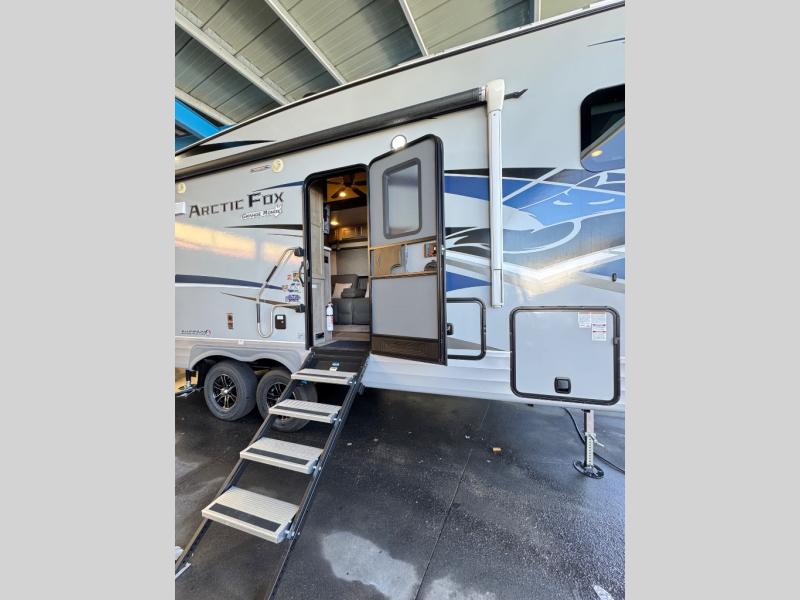 Each Northwood Arctic Fox Grande Ronde fifth wheel is built on a custom off-road chassis with a wide-body floorplan and offers a true four-season RV with high density block foam insulation and heated holding tanks. The interior offers solid surface countertops, a glass shower enclosure, slow rise night shades, and an interior command center to easily access your units functions in one convenient location. Each fifth wheel also includes a TruRest mattress, a hardwood dresser, USB ports on both sides of the bed, and a Starlite window with a shade to get a view of the stars! There is an exterior shower outside, along with a SolX 4 - 400 watt solar package, slam latch luggage doors, an exterior convenience center, and many more amenities!