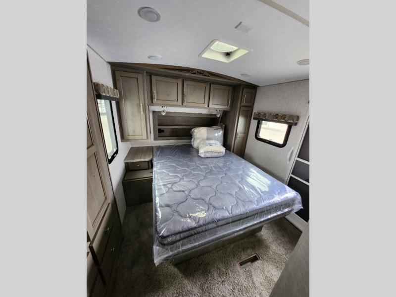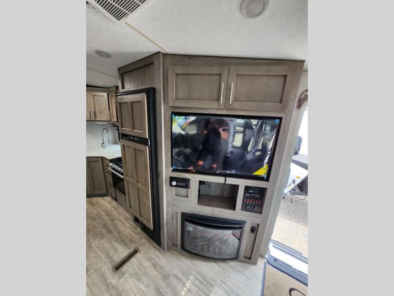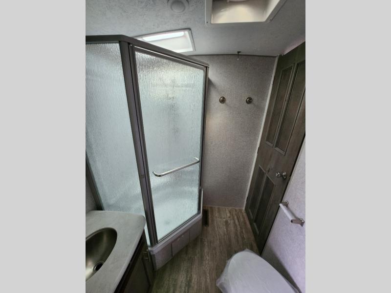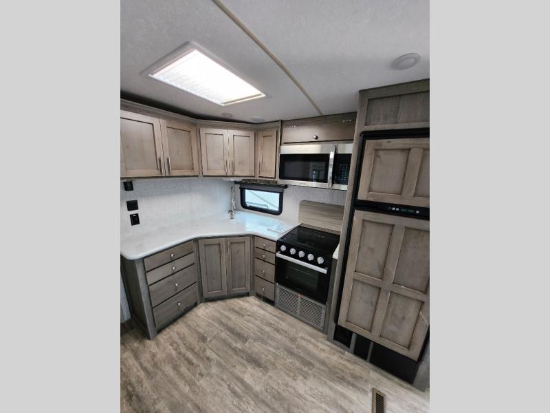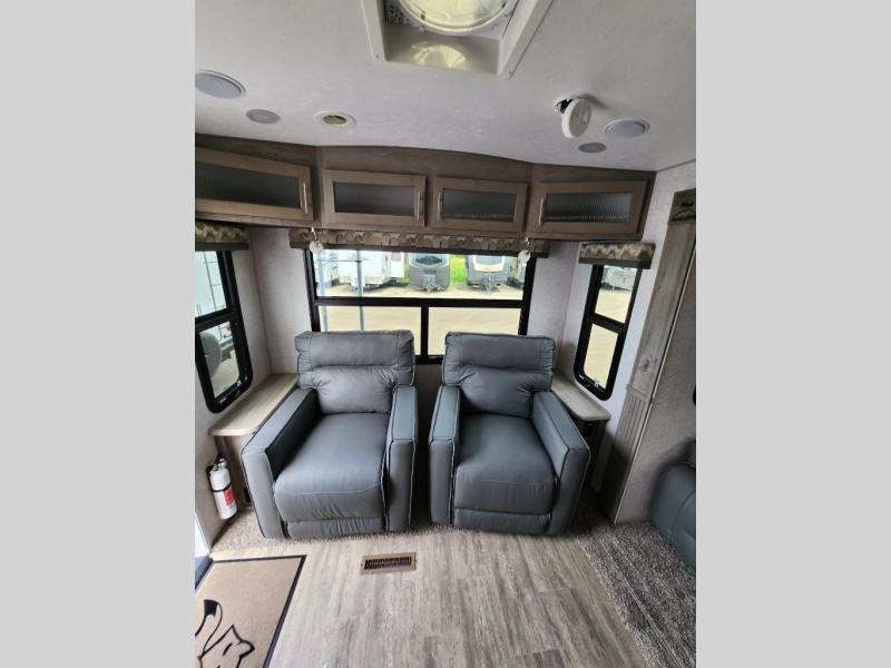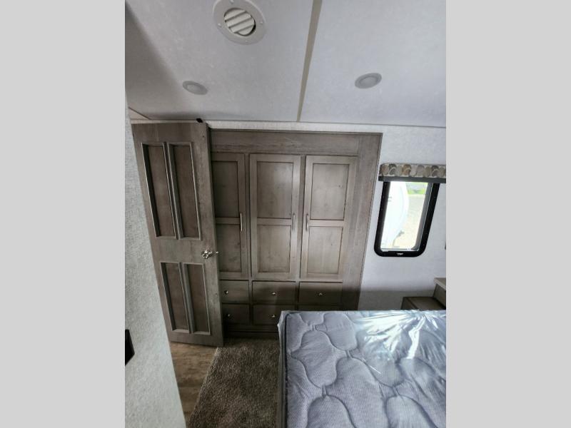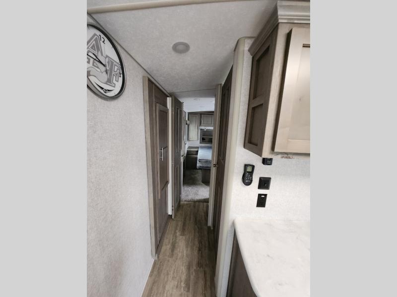 With a master suite up front and a set of lounge chairs in the back, this Arctic Fox North Fork travel trailer gives you comfortable accommodations so that you can enjoy resting after long days of activities. You can enter the front or back of this trailer because of the two entry doors that have been included, and with a pantry, linen closet, and wardrobe slide, you'll have enough space to store all of your various belongings.