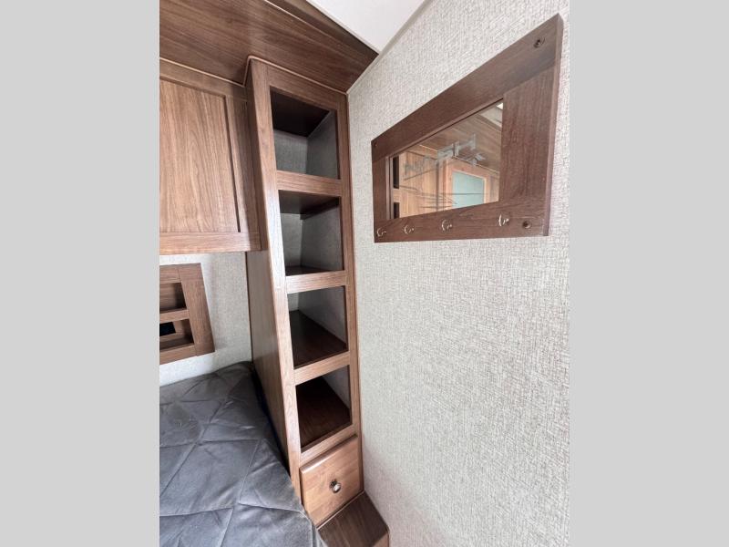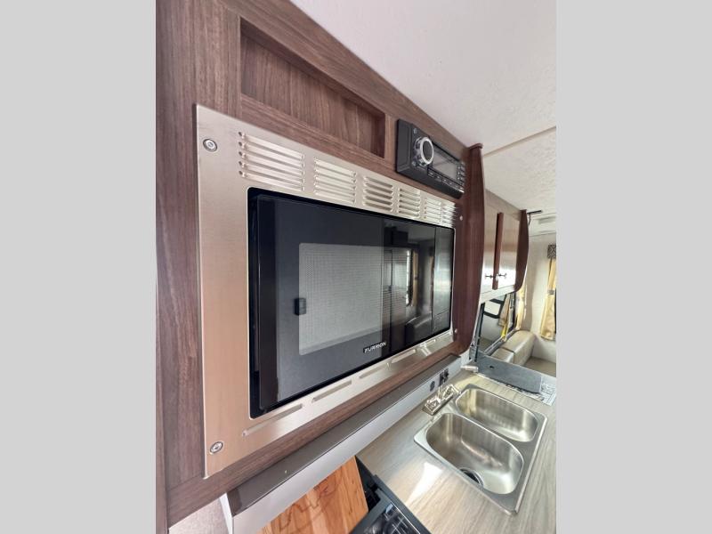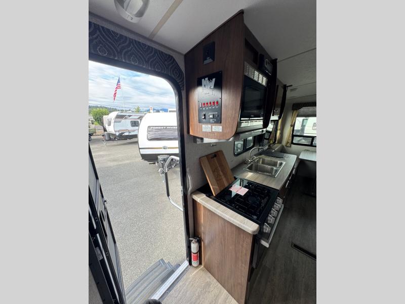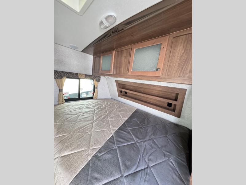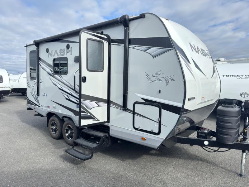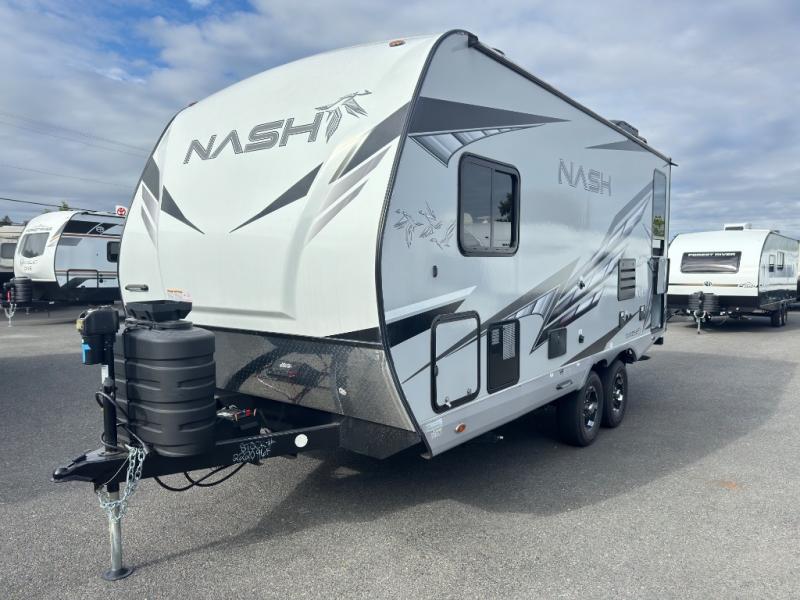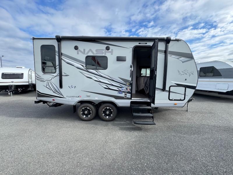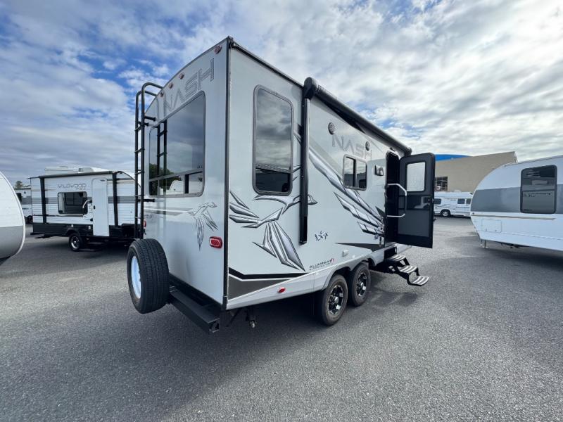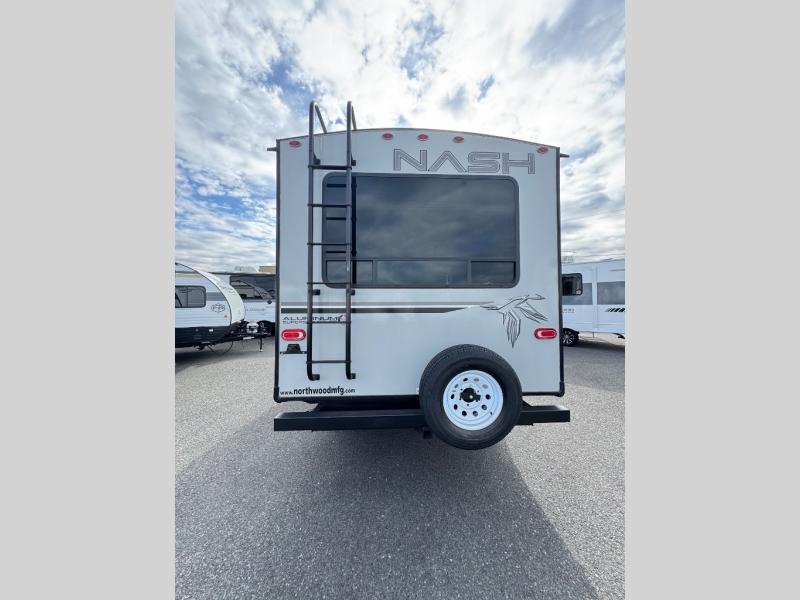 With any Nash travel trailer by Northwood, you can be sure you're getting a durable RV made to last thanks to the fully welded, thick-wall aluminum frame construction and Northwood built Ironhorse chassis. There are also thermal pane windows, Corona treated fiberglass, and all-conditions/four seasons insulation so you can camp year around! A pass through storage with an LED light will let you easily store camp gear and the SolX 4 - 400 Watt Solar Package will provide some off-grid capabilities. If you're wanting to go even more off-grid, just choose the optional Off The Grid Package! Head inside to enjoy the cathedral arched ceiling, along with slow rise night shades, a Northwood TruRest mattress, an AM/FM stereo with Bluetooth, and many more at-home comforts.