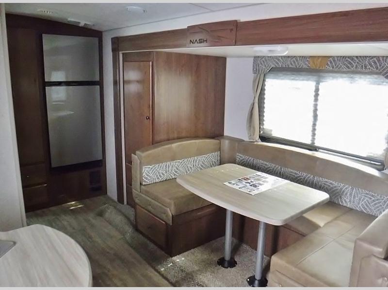 With any Nash travel trailer by Northwood, you can be sure you're getting a durable RV made to last thanks to the fully welded, thick-wall aluminum frame construction and Northwood built Ironhorse chassis. There are also thermal pane windows, Corona treated fiberglass, and all-conditions/four seasons insulation so you can camp year around! A pass through storage with an LED light will let you easily store camp gear and the SolX 4 - 400 Watt Solar Package will provide some off-grid capabilities. If you're wanting to go even more off-grid, just choose the optional Off The Grid Package! Head inside to enjoy the cathedral arched ceiling, along with slow rise night shades, a Northwood TruRest mattress, an AM/FM stereo with Bluetooth, and many more at-home comforts.
