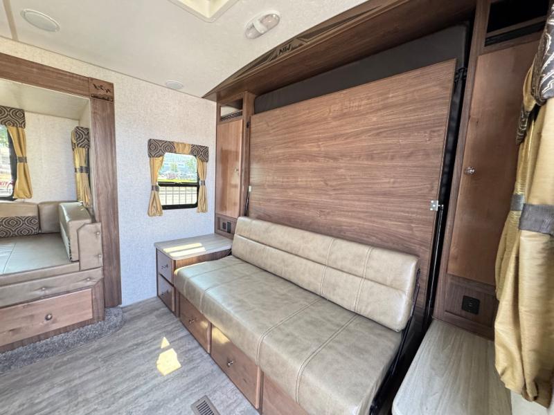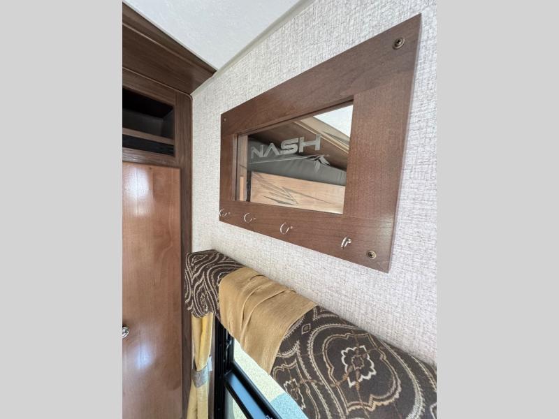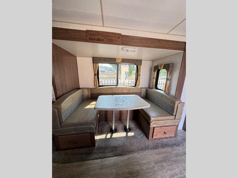With any Nash travel trailer by Northwood, you can be sure you're getting a durable RV made to last thanks to the fully welded, thick-wall aluminum frame construction and Northwood built Ironhorse chassis. There are also thermal pane windows, Corona treated fiberglass, and all-conditions/four seasons insulation so you can camp year around! A pass through storage with an LED light will let you easily store camp gear and the SolX 4 - 400 Watt Solar Package will provide some off-grid capabilities. If you're wanting to go even more off-grid, just choose the optional Off The Grid Package! Head inside to enjoy the cathedral arched ceiling, along with slow rise night shades, a Northwood TruRest mattress, an AM/FM stereo with Bluetooth, and many more at-home comforts.