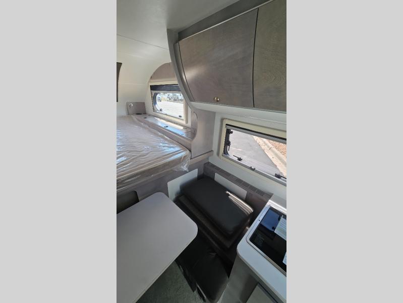 This Cirrus truck camper comes with a Froli sleep system which is a unique and innovative approach to a comfortable night of sleep. While you're sleeping on the bed, you can look through the stargazer window to appreciate the night sky. The dinette can easily be transformed into a second bed, and the sink, two-burner stove, and 4.6 cu. ft. 12V compressor refrigerator give you a place to prepare meals. This model also comes with an external LP hook-up, a Nautilus Water Management System, an exterior shower, and a dual battery compartment.