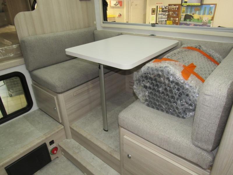 The Cirrus 920 truck camper is back and better than ever! This unit can run 100% on lithium batteries and solar power, but can also use an LP tank or generator if you choose. This truck camper fits a long-bed, one-ton truck perfectly and is ready for adventure when you are. A dry bath with a porcelain toilet and skylight also comes standard, which provides a more at-home feel.