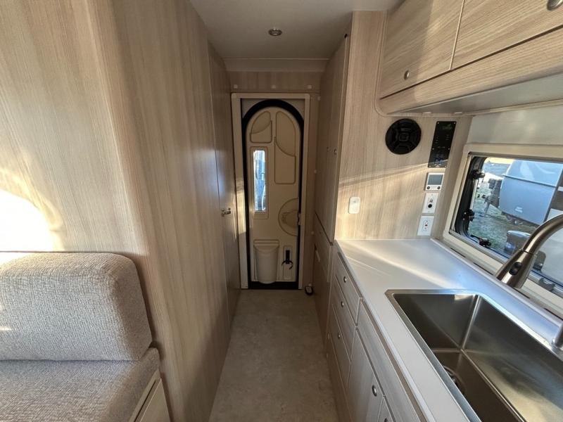 The Cirrus 920 truck camper is back and better than ever! This unit can run 100% on lithium batteries and solar power, but can also use an LP tank or generator if you choose. This truck camper fits a long-bed, one-ton truck perfectly and is ready for adventure when you are. A dry bath with a porcelain toilet and skylight also comes standard, which provides a more at-home feel.