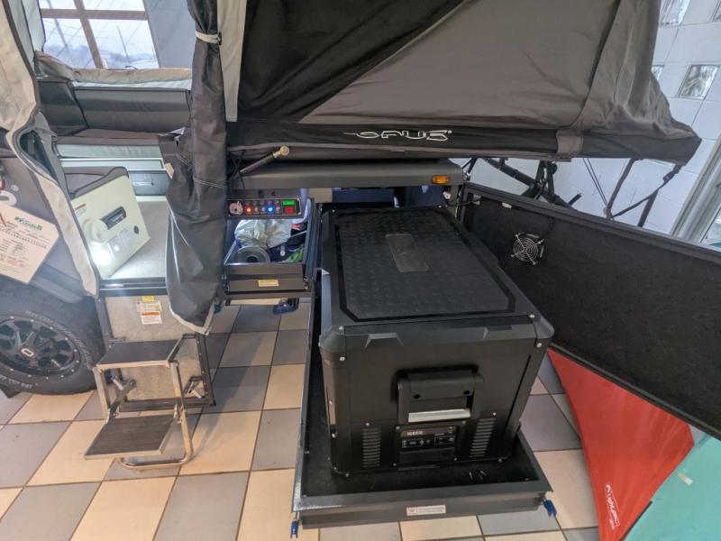 Compact, rugged, versatile, and ready for action, this OPUS folding pop-up camper is ready for adventure when you are! You can sleep each night above ground on your own RV queen tent bed and dine at the U-shaped dinette lounge with plush leatherette seating that converts into additional sleeping space if needed. The stainless steel kitchen slide out gives you a four-burner cooktop to make meals, plus you will have a 12V fridge slide out to stow your cold items. There are six windows with screens for optimal air ventilation when camping, and there are several options you might like to add such as the AIR Annex, the remote trailer mover, the ZAMP solar panel, and more!