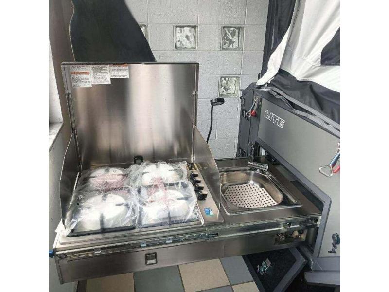 Compact, rugged, versatile, and ready for action, this OPUS folding pop-up camper is ready for adventure when you are! You can sleep each night above ground on your own RV queen tent bed and dine at the U-shaped dinette lounge with plush leatherette seating that converts into additional sleeping space if needed. The stainless steel kitchen slide out gives you a four-burner cooktop to make meals, plus you will have a 12V fridge slide out to stow your cold items. There are six windows with screens for optimal air ventilation when camping, and there are several options you might like to add such as the AIR Annex, the remote trailer mover, the ZAMP solar panel, and more!