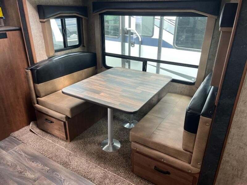 This is the perfect adventurist travel trailer with off-road and off-grid capability, plus the queen bed up front sleeps two and allows you to rest up after all the fun outdoors! You will find storage on each side as well as USB ports to keep your iPad and cell phones charged. The swing-out 32" TV can be viewed from pretty much anywhere giving you inside entertainment, and the slide out booth dinette offers dining and sleeping space plus more interior floor space to move about. You will love the natural lighting from the skylights and windows. The cook can make meals in the galley kitchen, and everyone will stay refreshed with the full bathroom in the rear corner next to the handy entry closet.