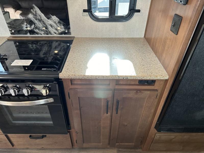 Each Back Country MTN TRX travel trailer by Outdoors RV is designed for camping off-grid plus you can go off-road, camp in national forest or even enjoy primitive style camping! Built with a custom-built cambered off-road HD 8' chassis, Mountain Extreme thermal pane windows, 16" Goodyear Endurance radial tires, plus more Climate Designed Four Seasons features allowing you to camp during any season. Some other standout features include a 24" Xtra tall power tongue jack, an HD full fiberglass front cap, and a Cummins Onan 3.6k on-board LP generator to keep your adventures going. Some of the interior highlights include a Mountain Comfort premium mattress, an easy access Home Defense bed safe, vaulted radius ceiling that provides approximately 5" of additional headroom for a spacious interior, a Bluetooth sound system, and LG solid surface kitchen countertops for style and easy care.