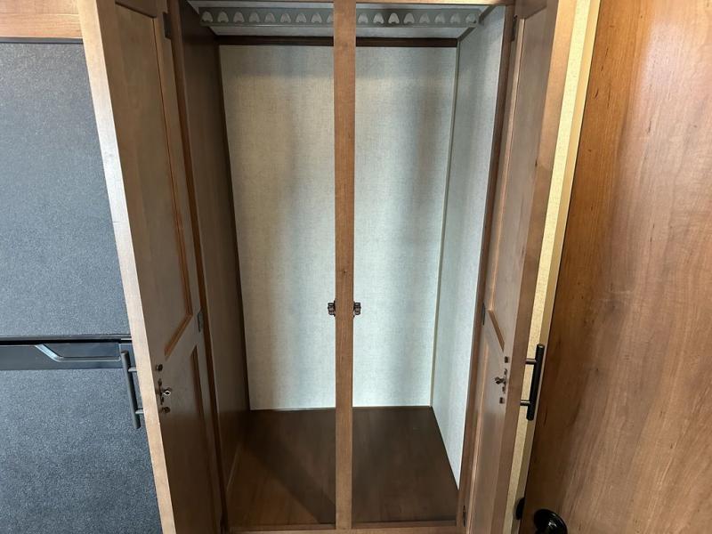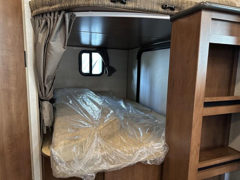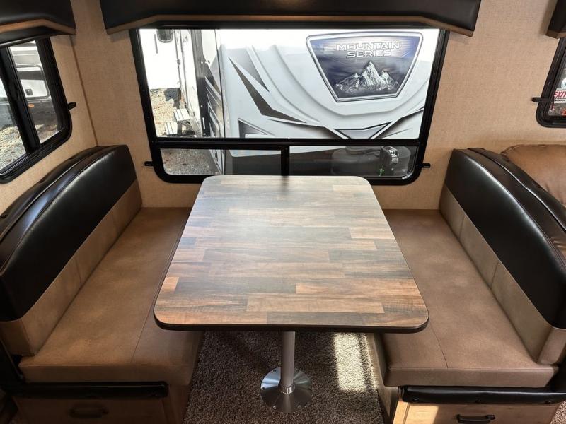 Outdoor enthusiast love this Back Country for many reasons when they camp at local campgrounds, state parks, off-grid and even at friend's ranches. The handy garage storage door allows you to place items from the exterior into the interior for safe travels under the bunks. The double-size bunks and ladder allow four to sleep each night, the mountain dinette and sleeper sofa offer three to four more spaces, and the owners will enjoy their own queen bed in the front private bedroom. The kitchen offers full amenities, the swing-out 40" TV offers inside entertainment, and the full bathroom will keep everyone clean after a fun day outdoors. There is more, step inside to see it all!